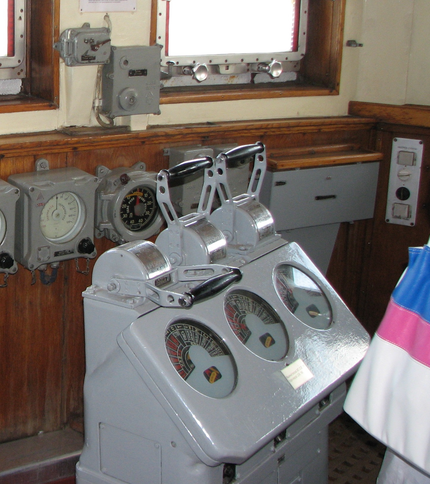 Почему манипулятор на 2-м ярусе всего один ,может быть он для прожектора на грот-мачте? Где могли стоять манипуляторы для "носовой" группы прожекторов ? На ходовом мостике ничего подобного нет...