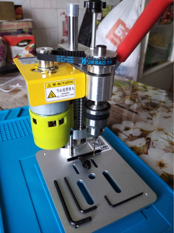 Под Новый год прикупил себе станочек. 120 W по мощности, патрон от 0.6 до 6 мм. Получил, подключил, как и предполагал имеющийся блок питания подошел. Включил, шуршит. Все на подшипниках, без люфтов. СКАЗКА!!!! Станок выглядит так. Ура!!!