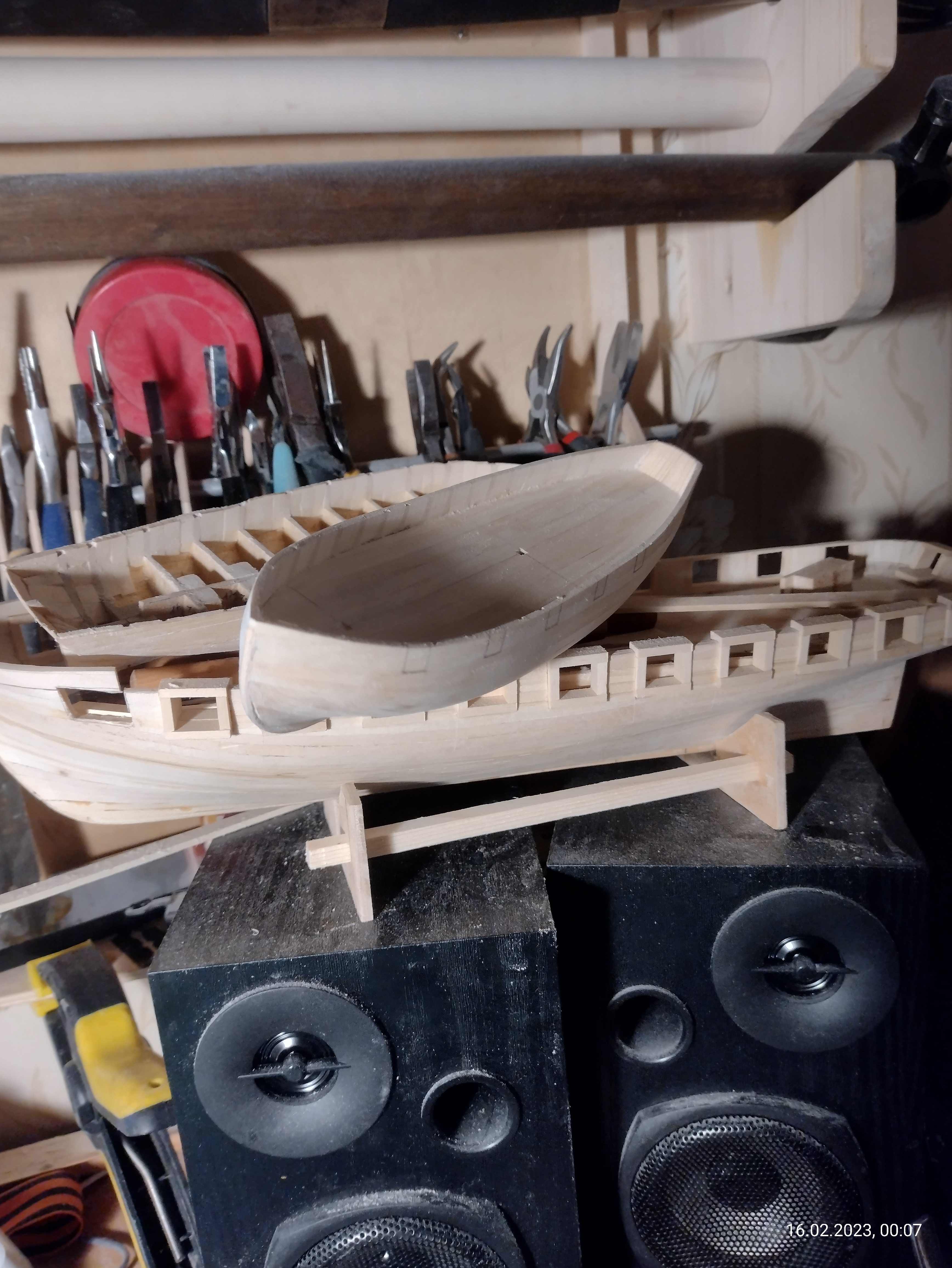 РС. Снимок того что есть. Правда сейчас уже паруса ставлю. Осталось их натянуть, карронады поставить, шлюпки подвесить. Все живое, тянется и отдается.
