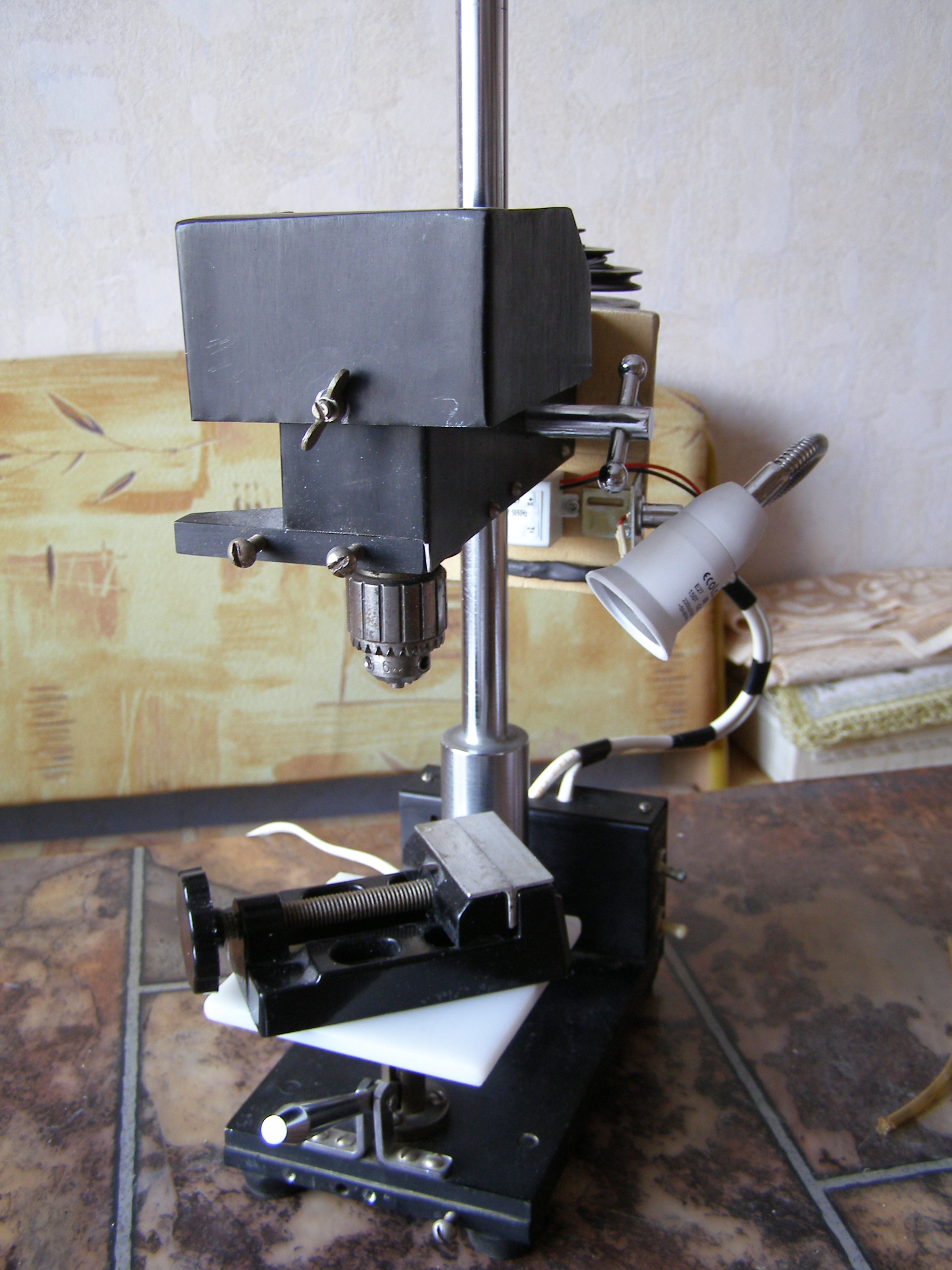 Естественно заменил направляющею, поставил китайский 100вт движок от швейной машинки, поставил электронный регулятор, подогнал суппорт, сделал основание с ящиком, освещение..