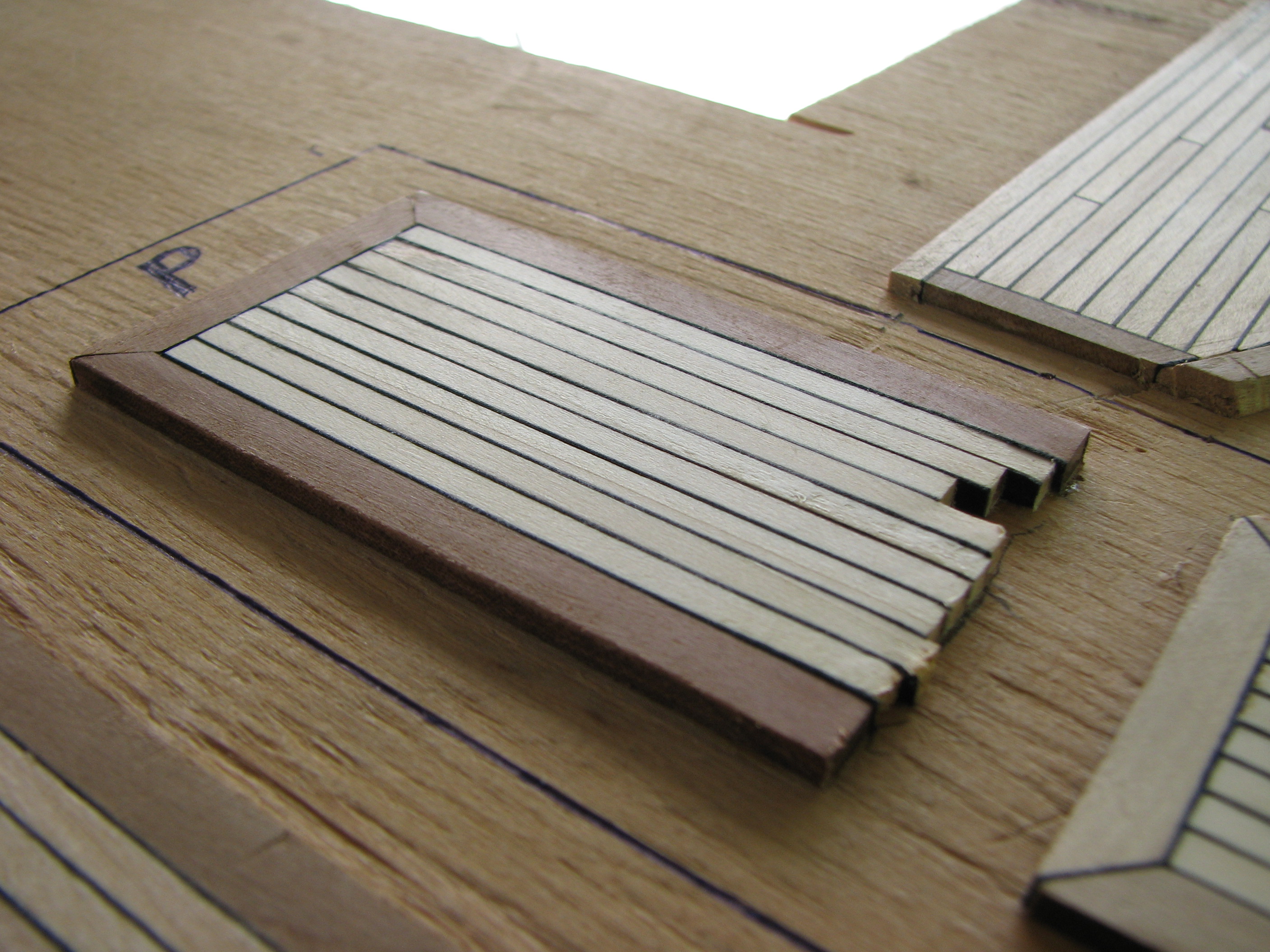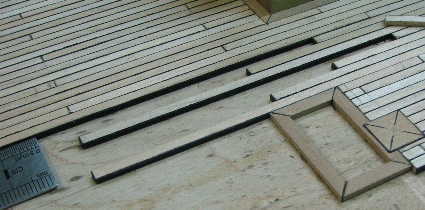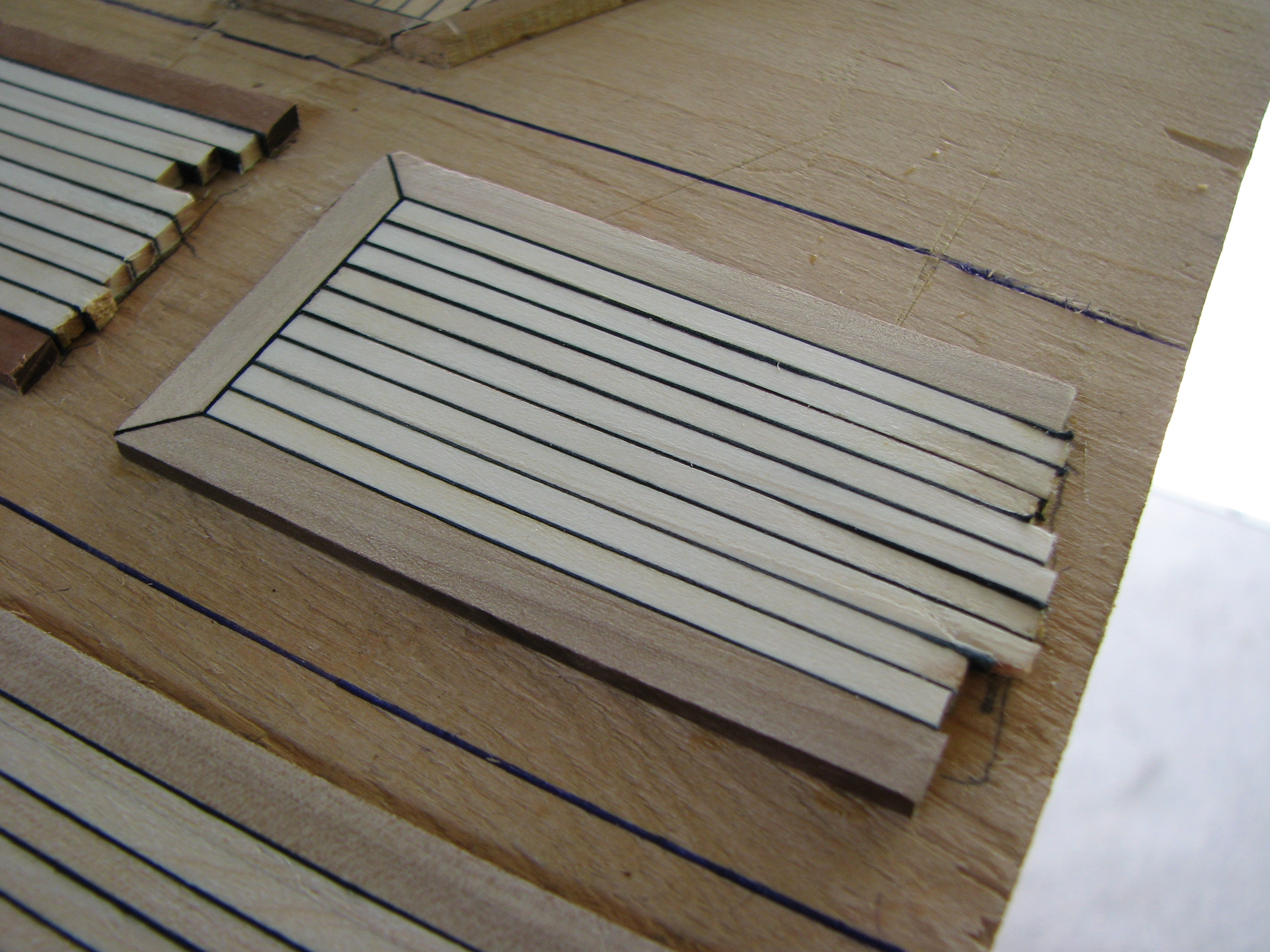 Имитация швов конопатки палубы при помощи черной бумаги.