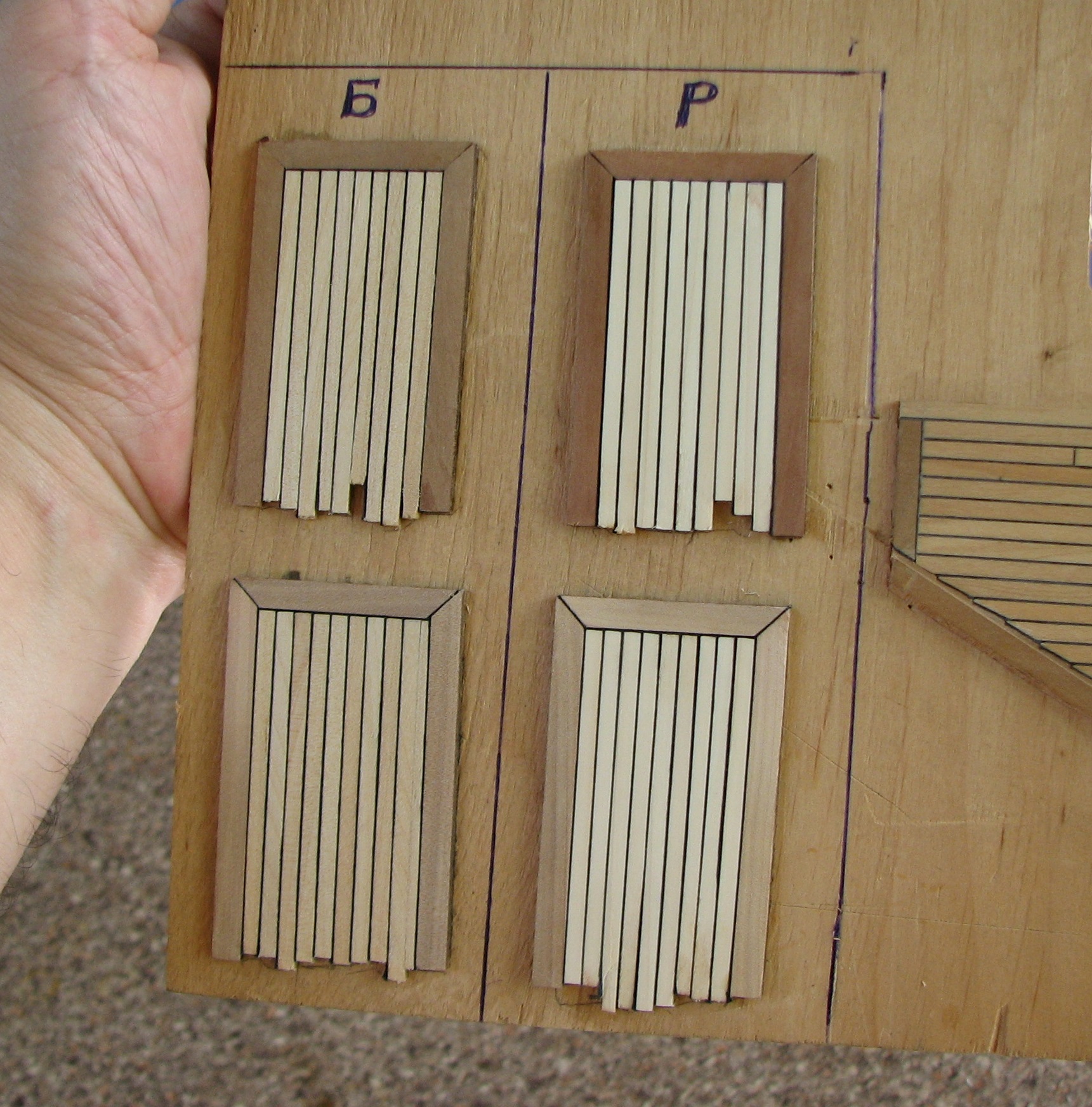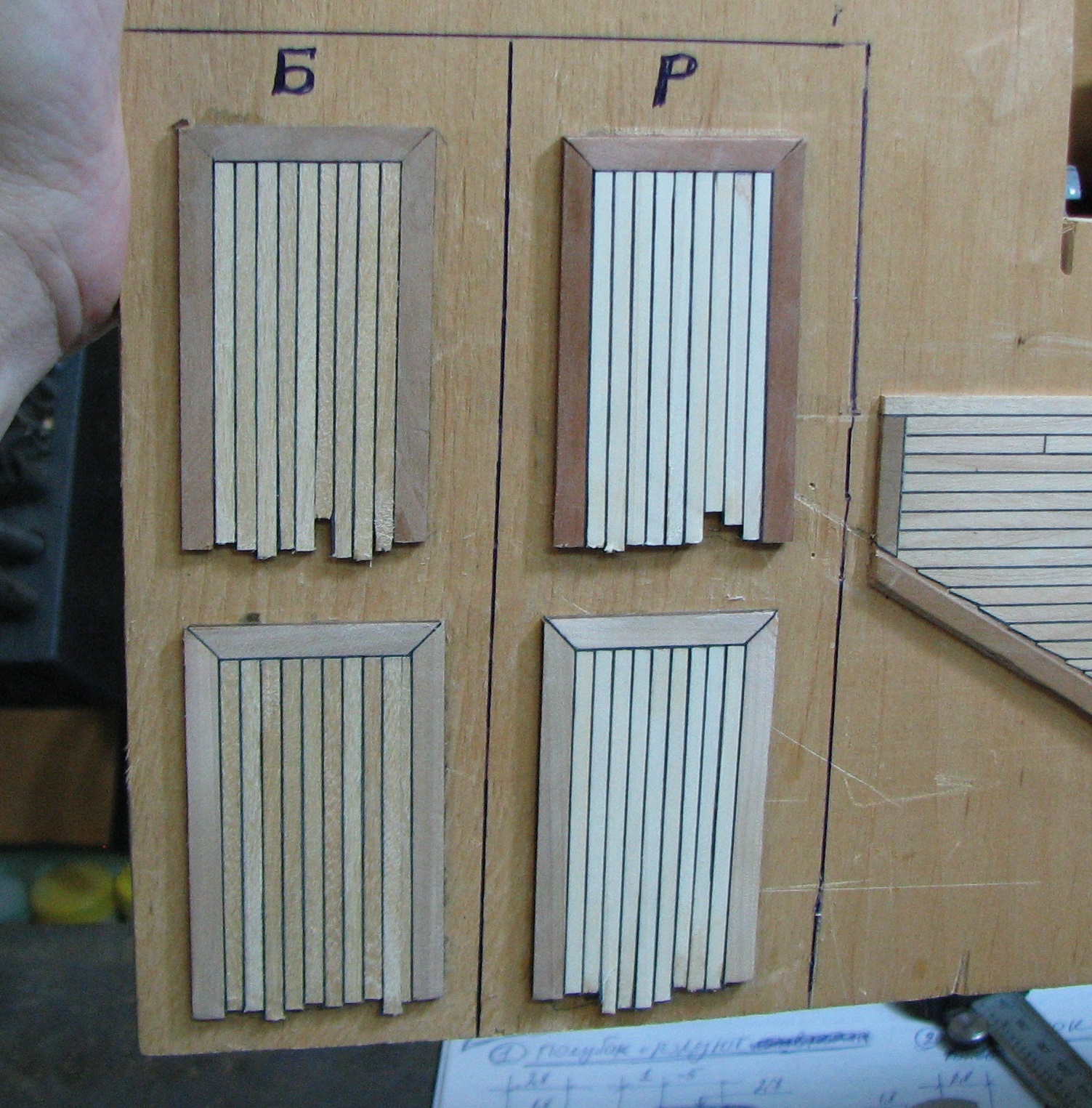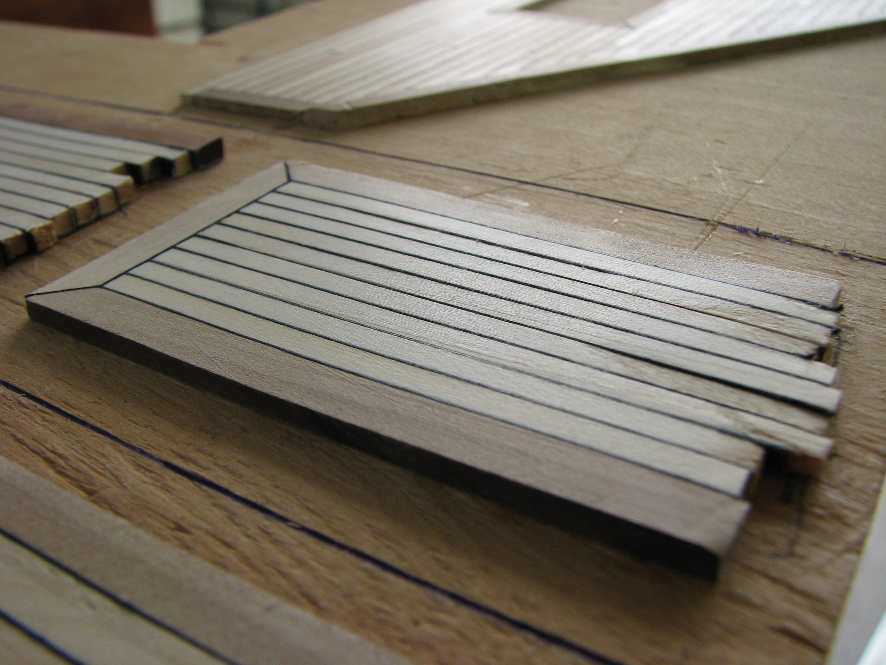 Имитация швов конопатки палубы при помощи черной бумаги.