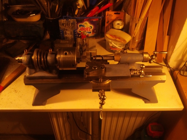 Хороший станочек. Еще бы к нему суппорт для подачи резца под углом, задний вращающийся центр и прозрачный кожух назад поставить.