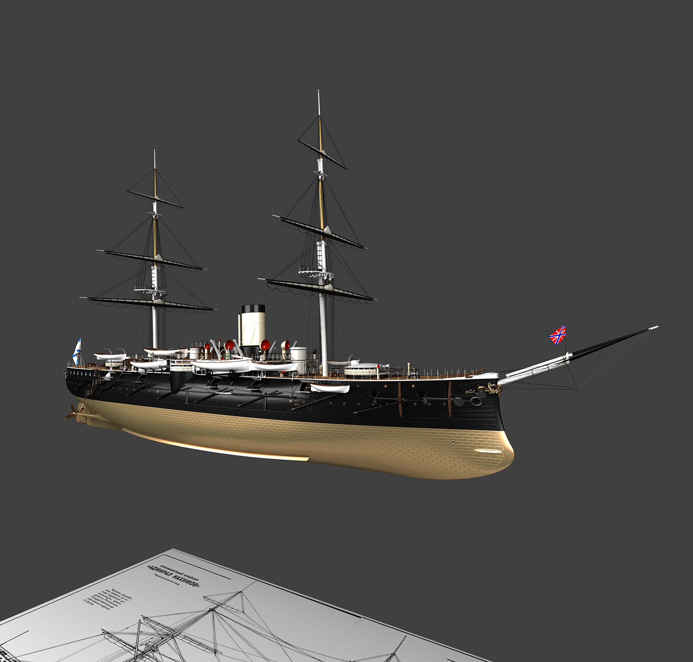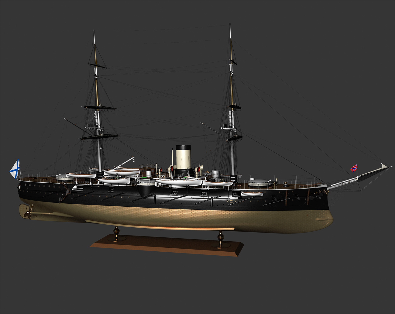 Вот есть такая разработка, автора к сожалению не знаю, броненосный крейсер "Адмирал Нахимов".