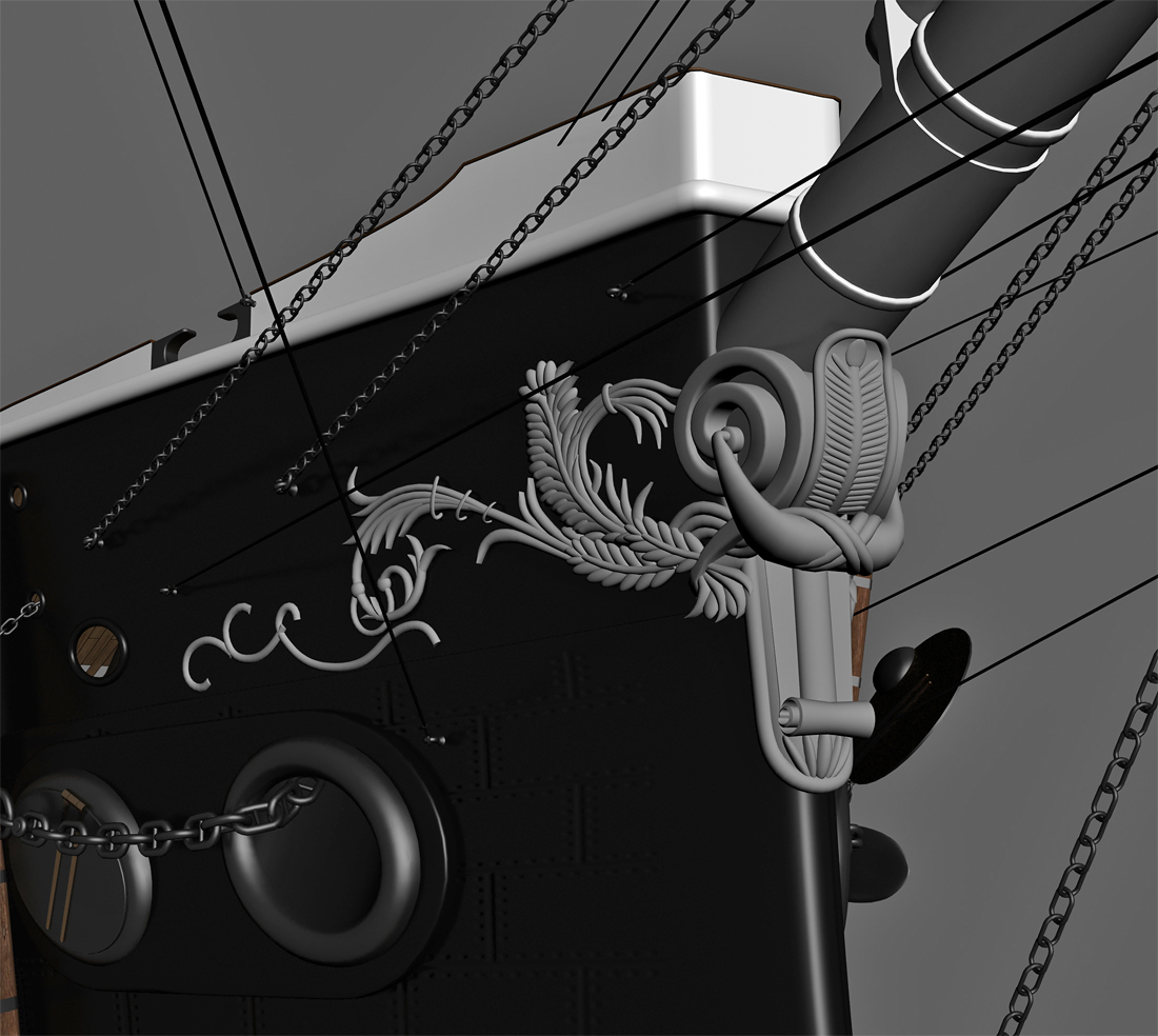 Сравните например фото моей работы с 3Д фрагментом,который Вы выложили выше и фотками реального корабля.И сразу все поймете.