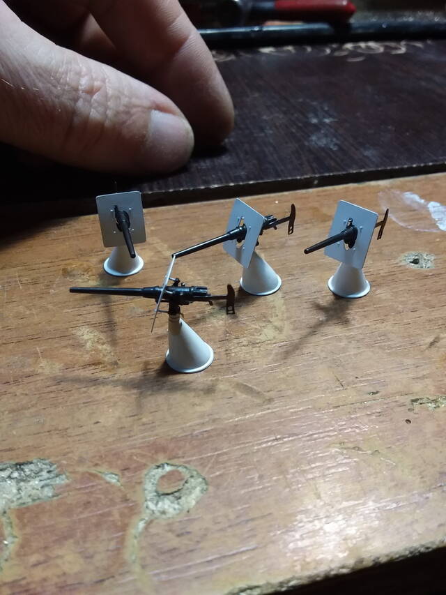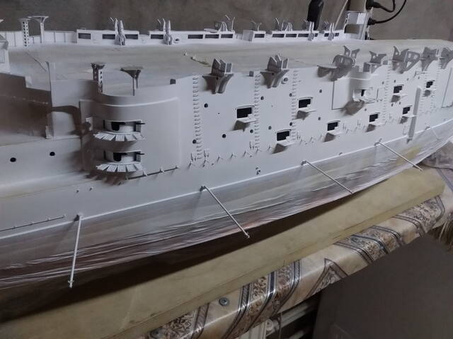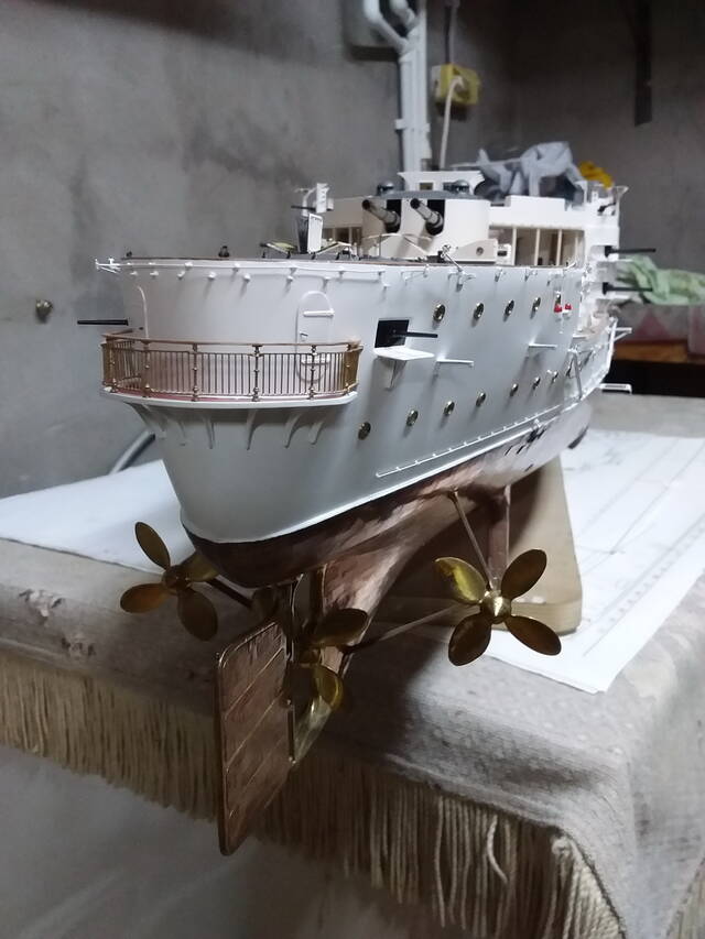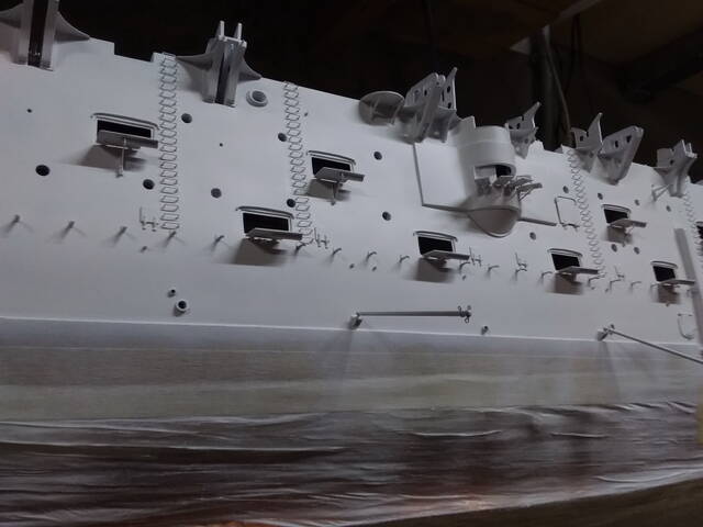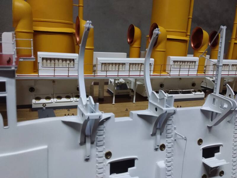 Противоторпедное оснащение и шлюпбалки я красил с начало отдельно, а затем косметически подкрашивал уже на корпусе при финишной окраске корпуса.
