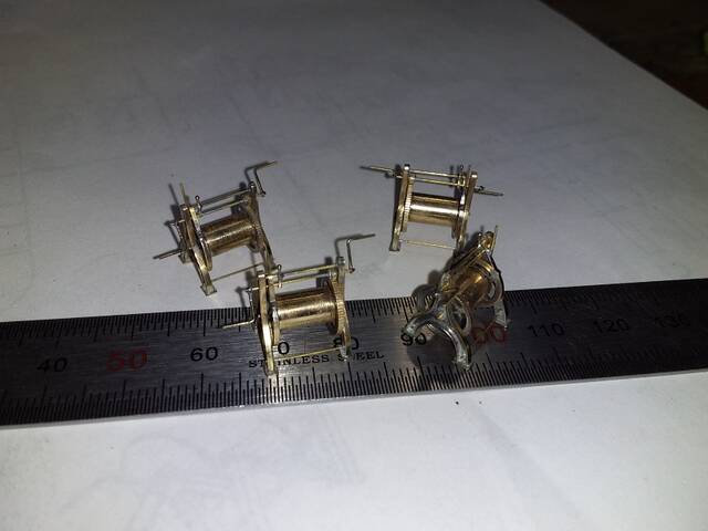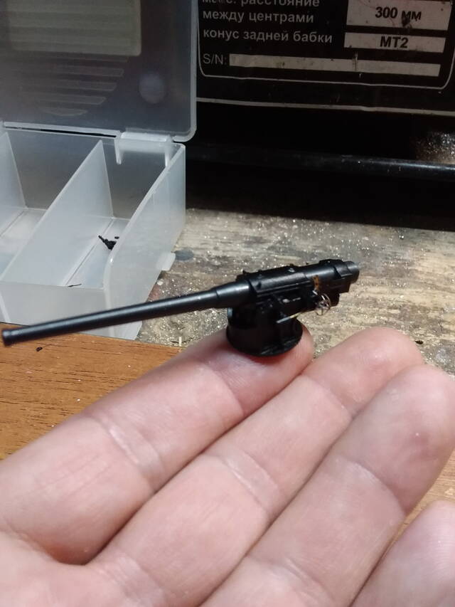 Осталось лишь несколько сюжетов 47 мм орудий. Завтра выложу. А так токарка, фрезировка. Стволы чернились, остальное красилось.