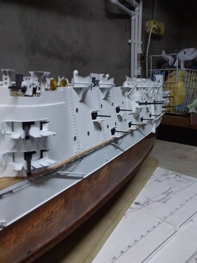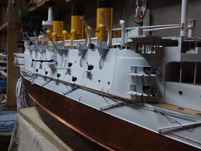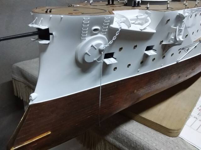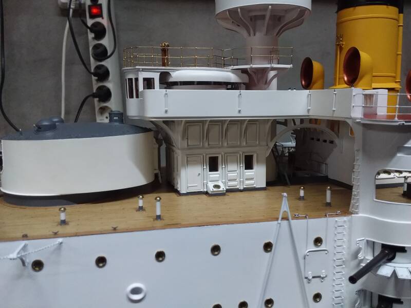 Еще раз разглядывал твое творение. Обратил внимание на леера, есть латунные на штурманской рубке, а есть крашенные в белый цвет на мостике.