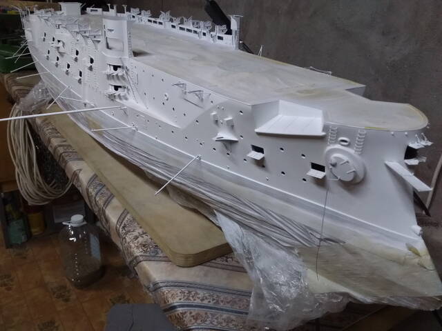 Это на фото может всё сливаться, а когда распечатается палуба с подводной частью и установятся надстройки вот тогда корпус проявится. Вообще белый цвет наоборот всё очень даже проявляет в деталировке, в том числе и так называемые "косяки" в виде задиров и всякого рода неровностей на плохо обработанной поверхности, а также мелких песчинок.