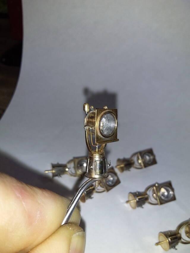 Вячеслав, в принципе ничего сложного нет. На 3-й и 4-й фотографиях видно из чего состоит "внутрянка" прожектора. Линзу отражателя выдавил из фольги. Внешнее стекло вырубал пробойчиком из пластика. Так называемую дугу с полусферическим отражателем, с имитировал выточив на токарнике.