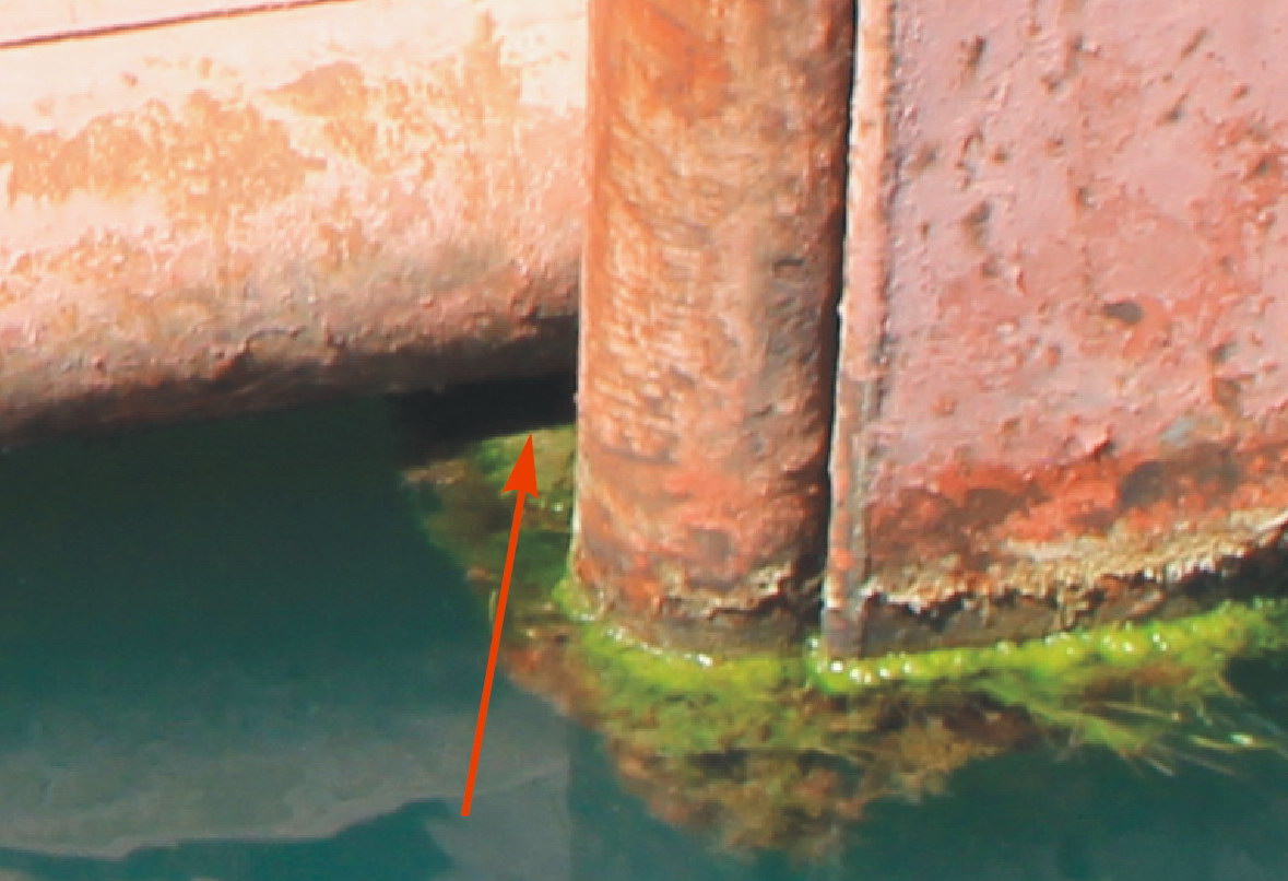 На фото в доке с красной стрелкой, мне видится полукруглая труба, что подтверждается и этим фото: