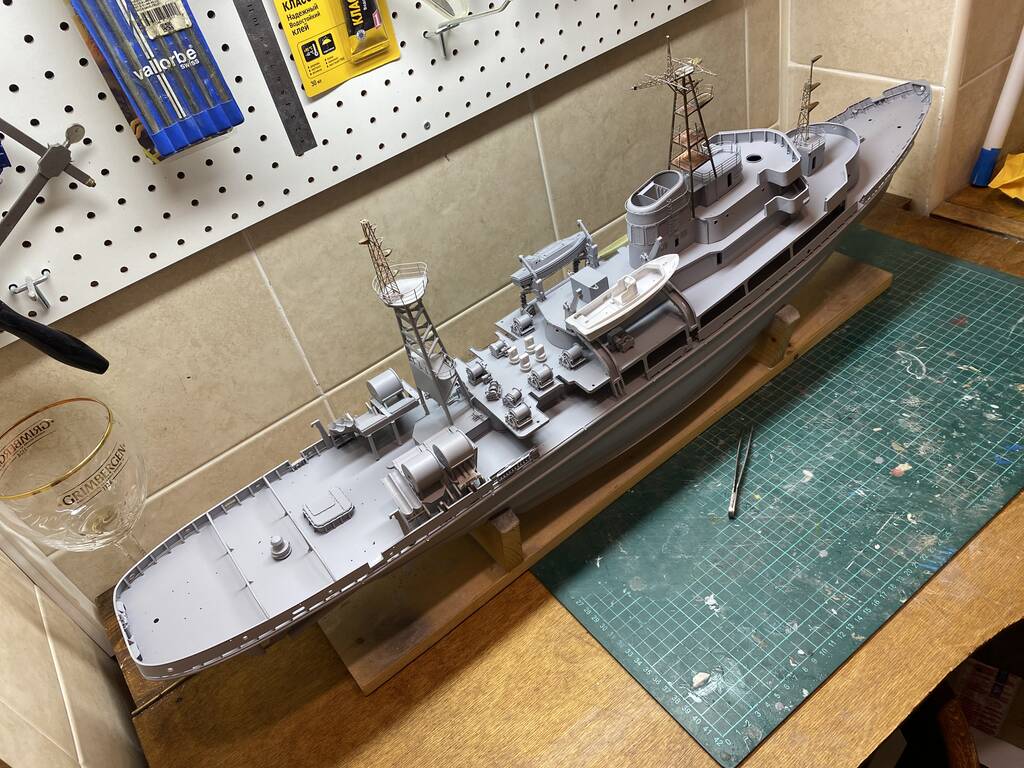 Обтекатель похож на устанавливающиеся на тральщики пр.266м. Может ГАС такая же стояла, На тральщиках пластиковый был. Не окрашивался.