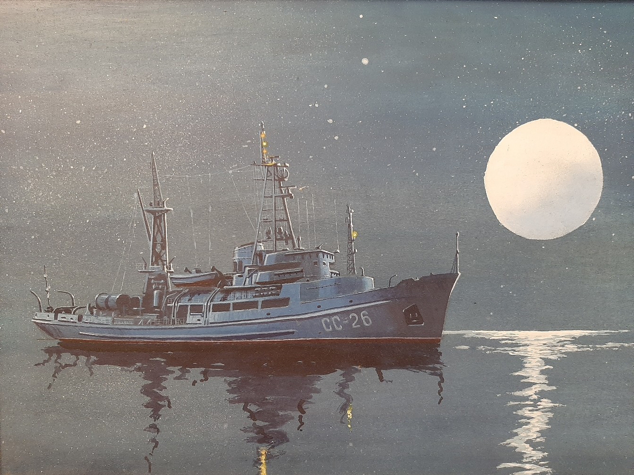 Игорь, здравствуй. Картина пера Яруллина Тимура Назифовича, кап3, служившего на корабле. Она принесена в дар его товарищу.