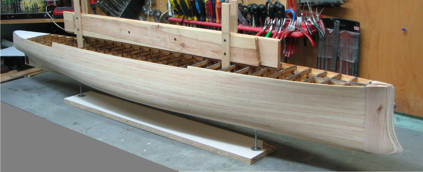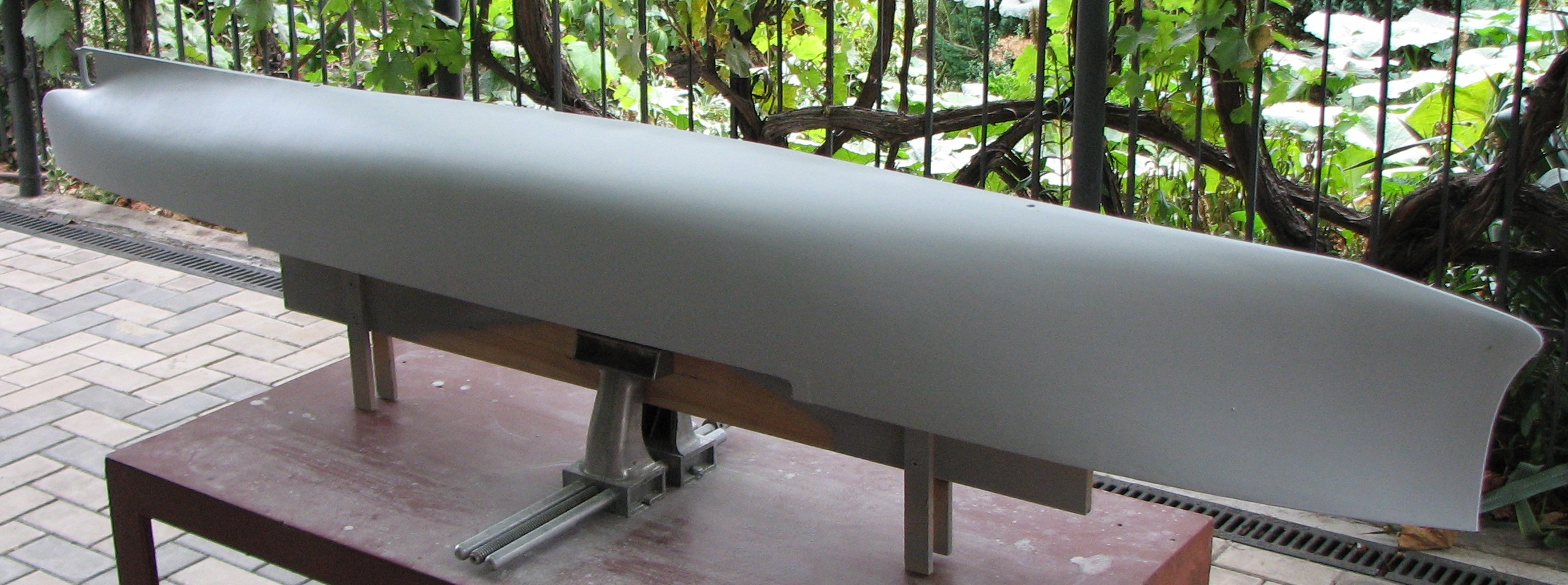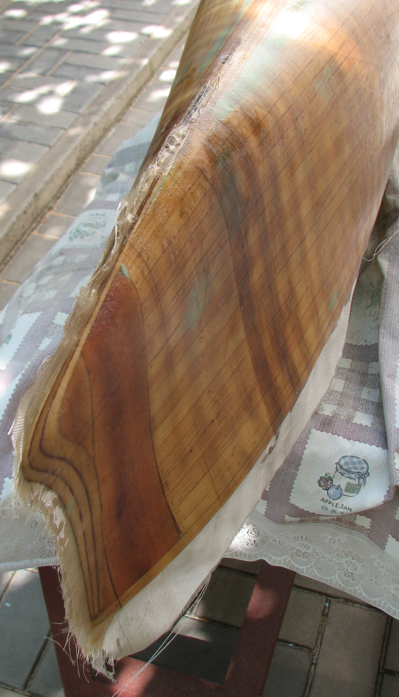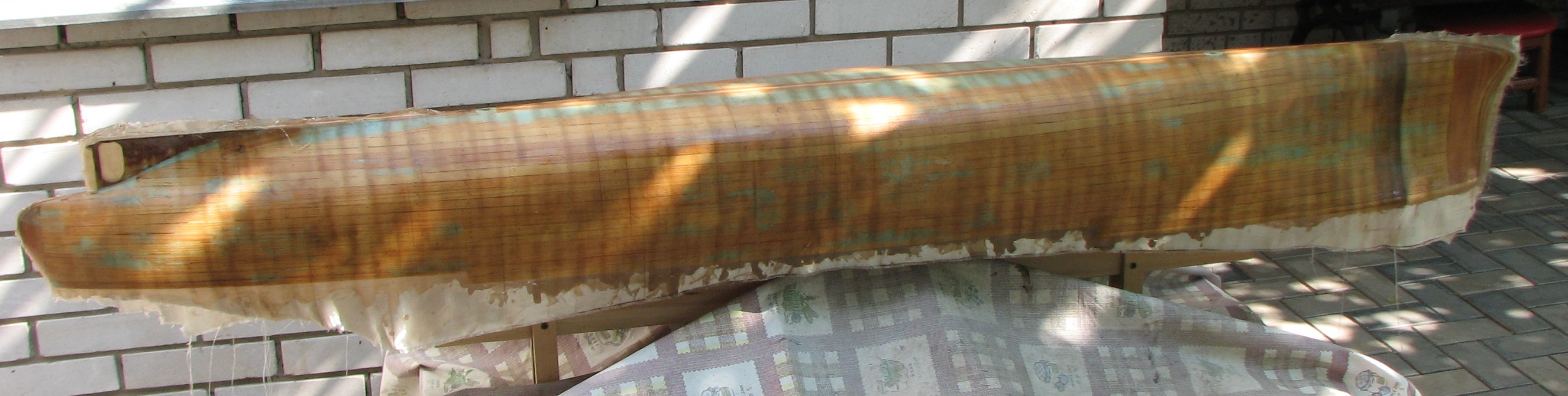 Т.е.  фанерный набор корпуса обшит сосновой рейкой  , а сверху покрыт стеклотканью пропитанной эпоксидной смолой. Внутри  корпуса фанерный набор и обшивка пропитаны очень жидкой эпоксидкой.