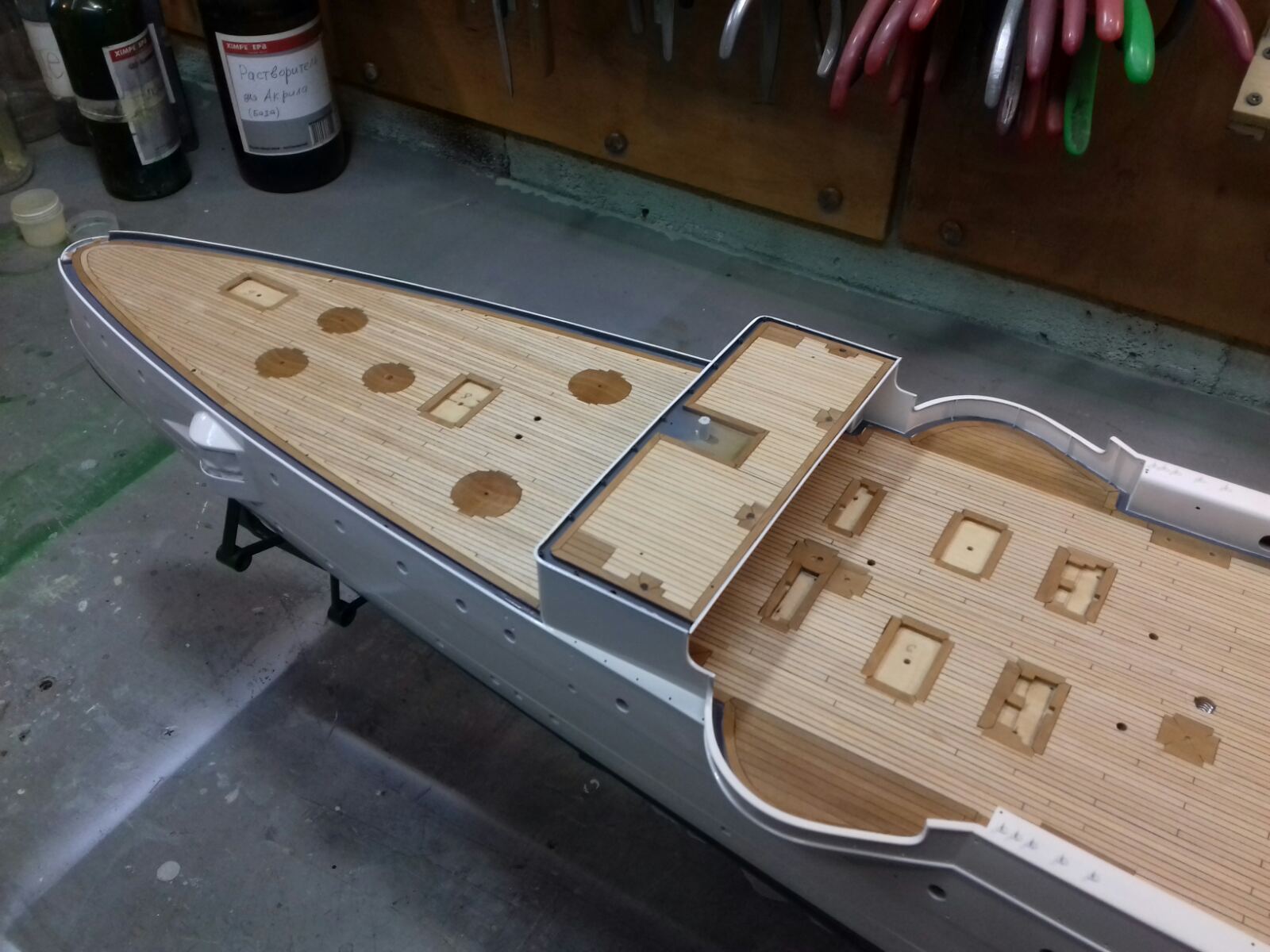 Валера, а есть фотографии по технологии нанесения линий поясов обшивки борта? Как и чем ты их выделял