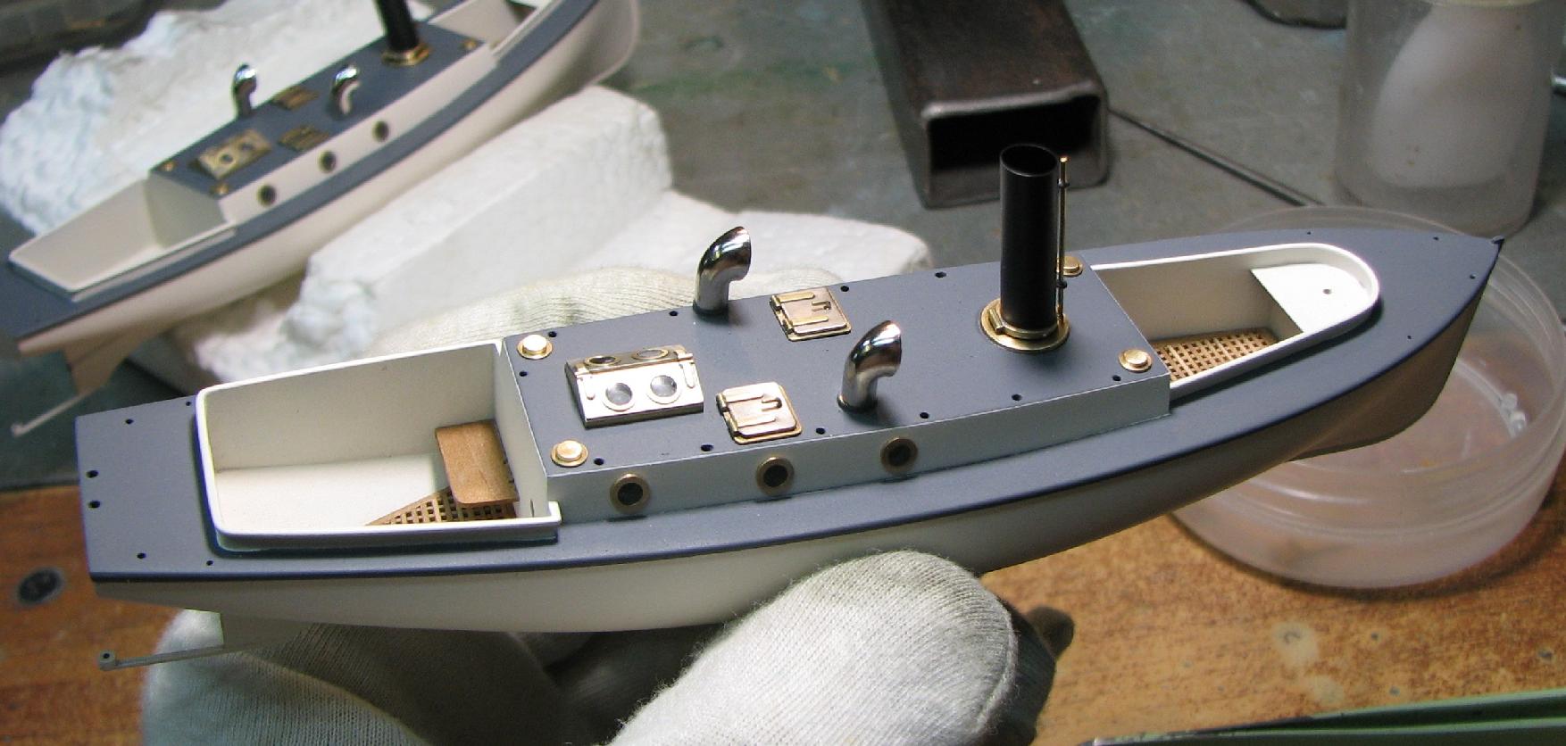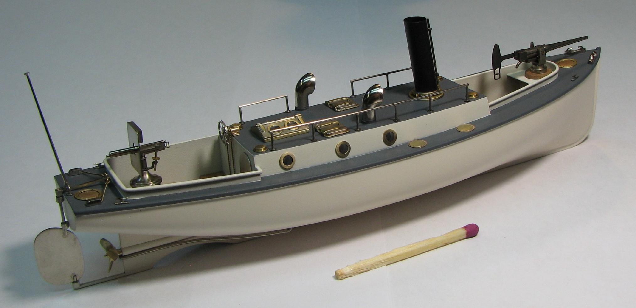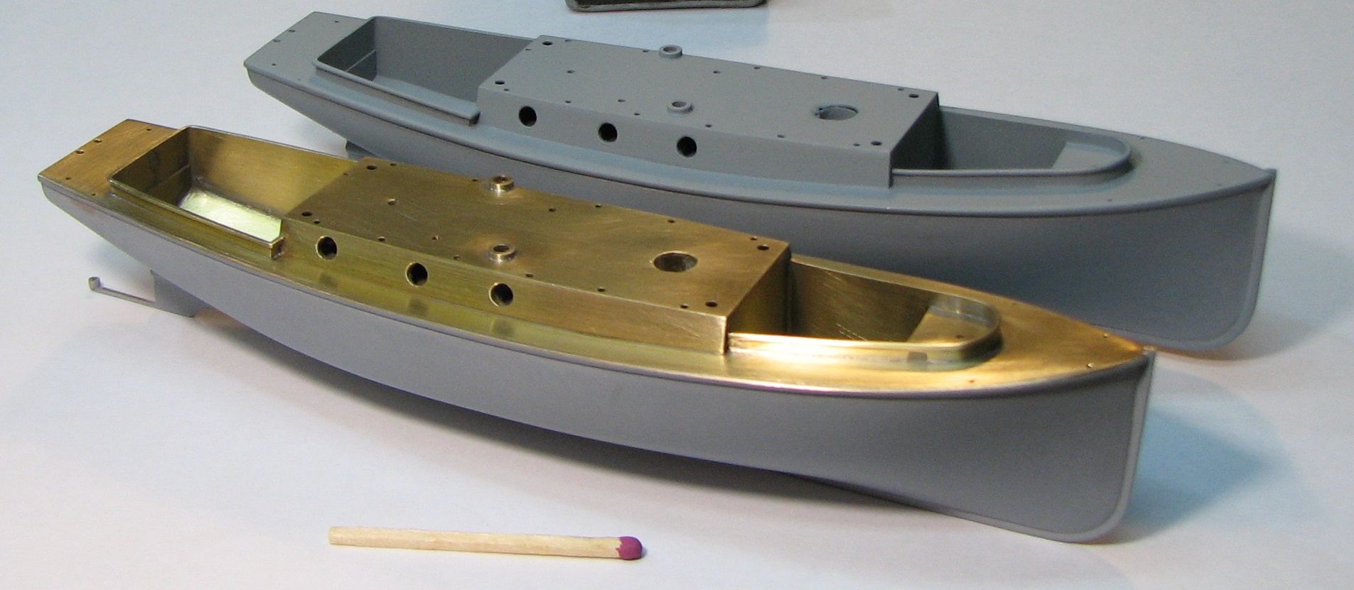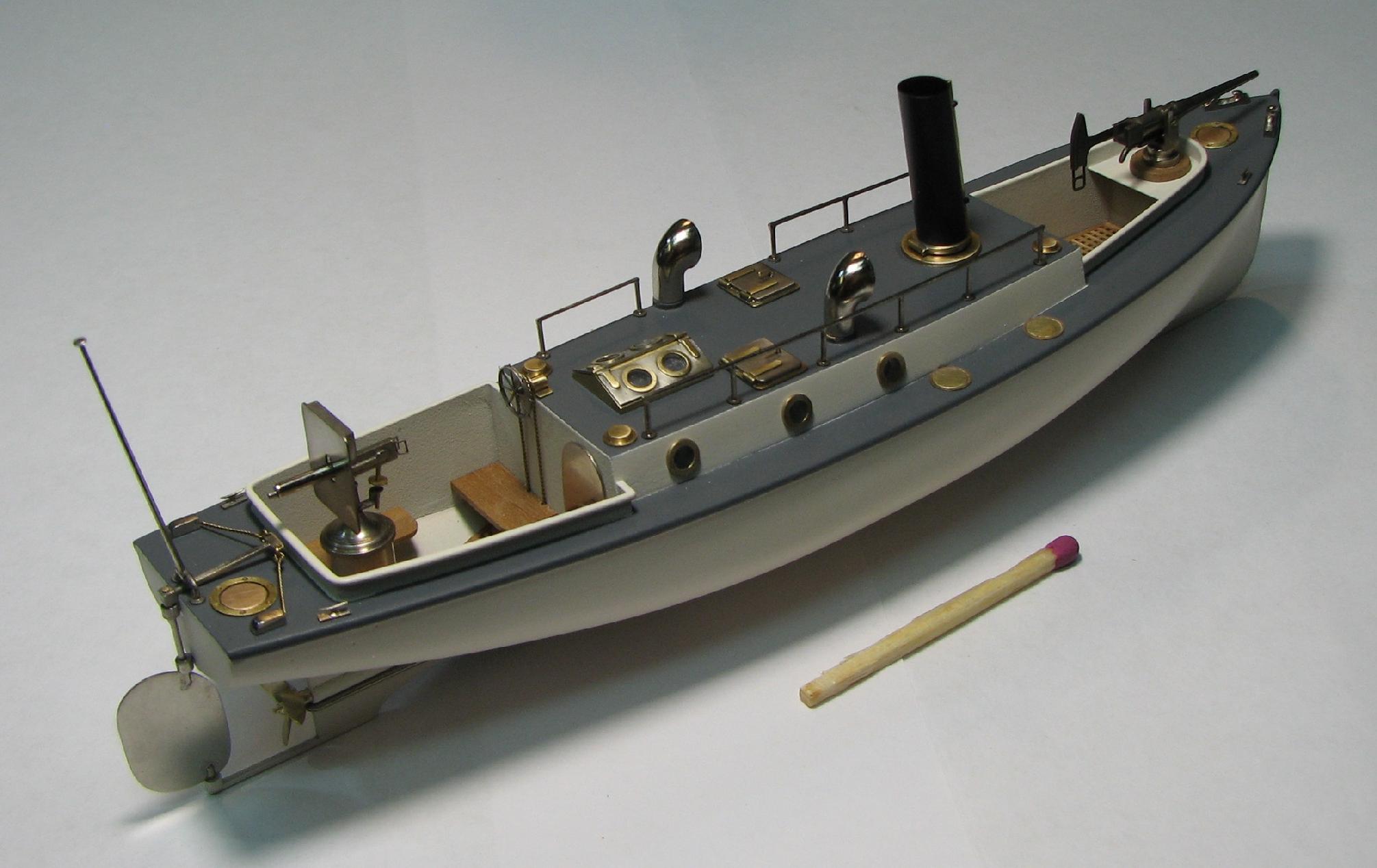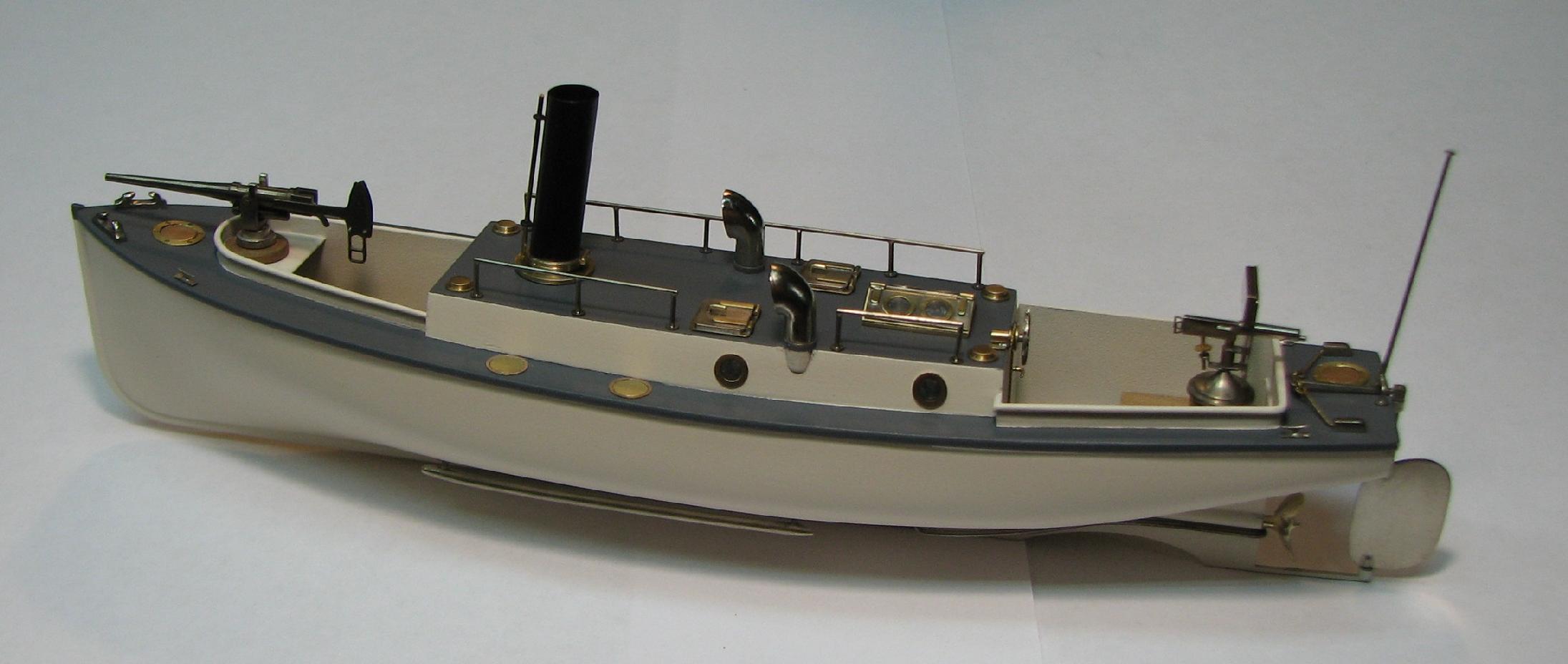 Теория британского 40-ка футовика по габаритам и очертаниям почти полностью совпала с изображением катера на видах крейсера сверху и сбоку , поэтому корпус болванки катера делал по ней.