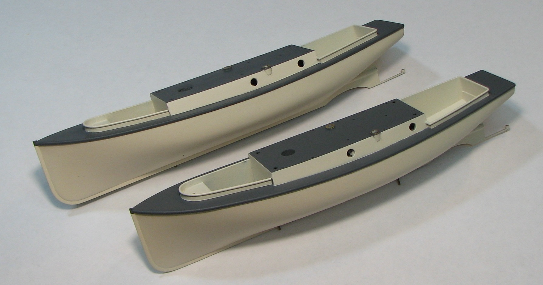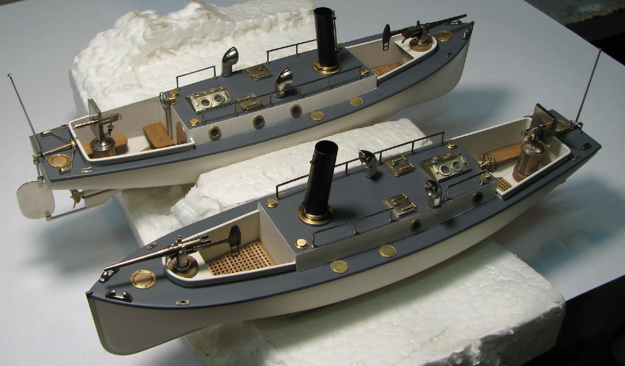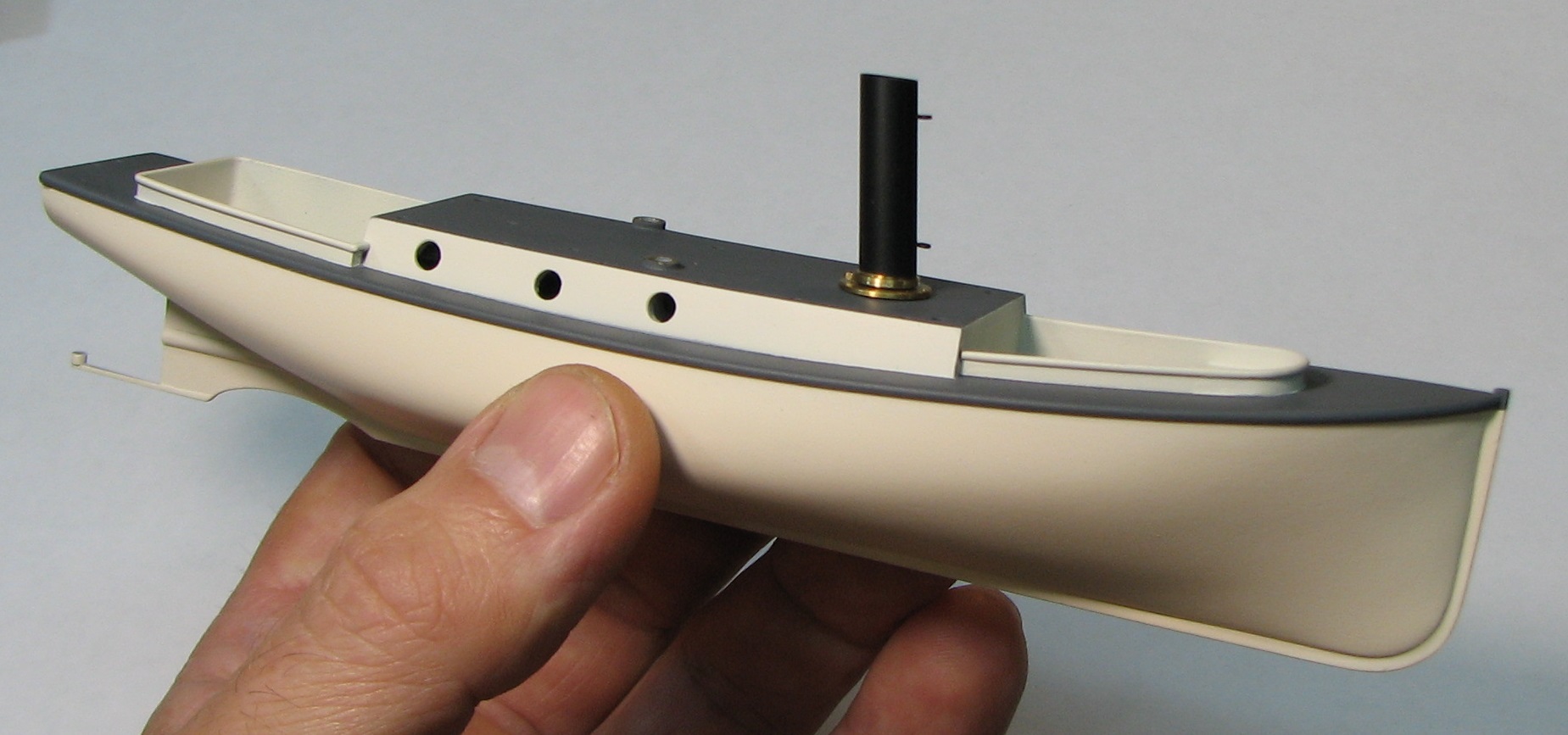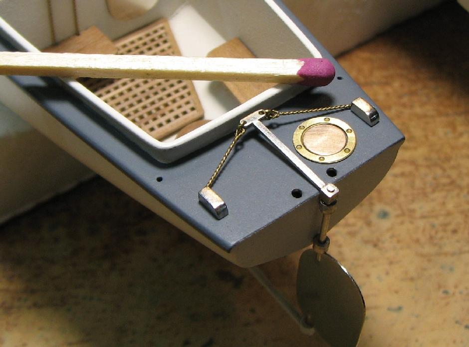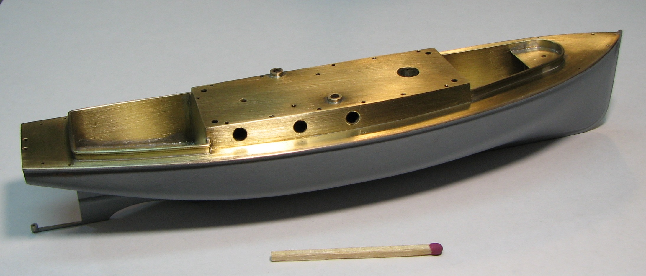 Теория британского 40-ка футовика по габаритам и очертаниям почти полностью совпала с изображением катера на видах крейсера сверху и сбоку , поэтому корпус болванки катера делал по ней.