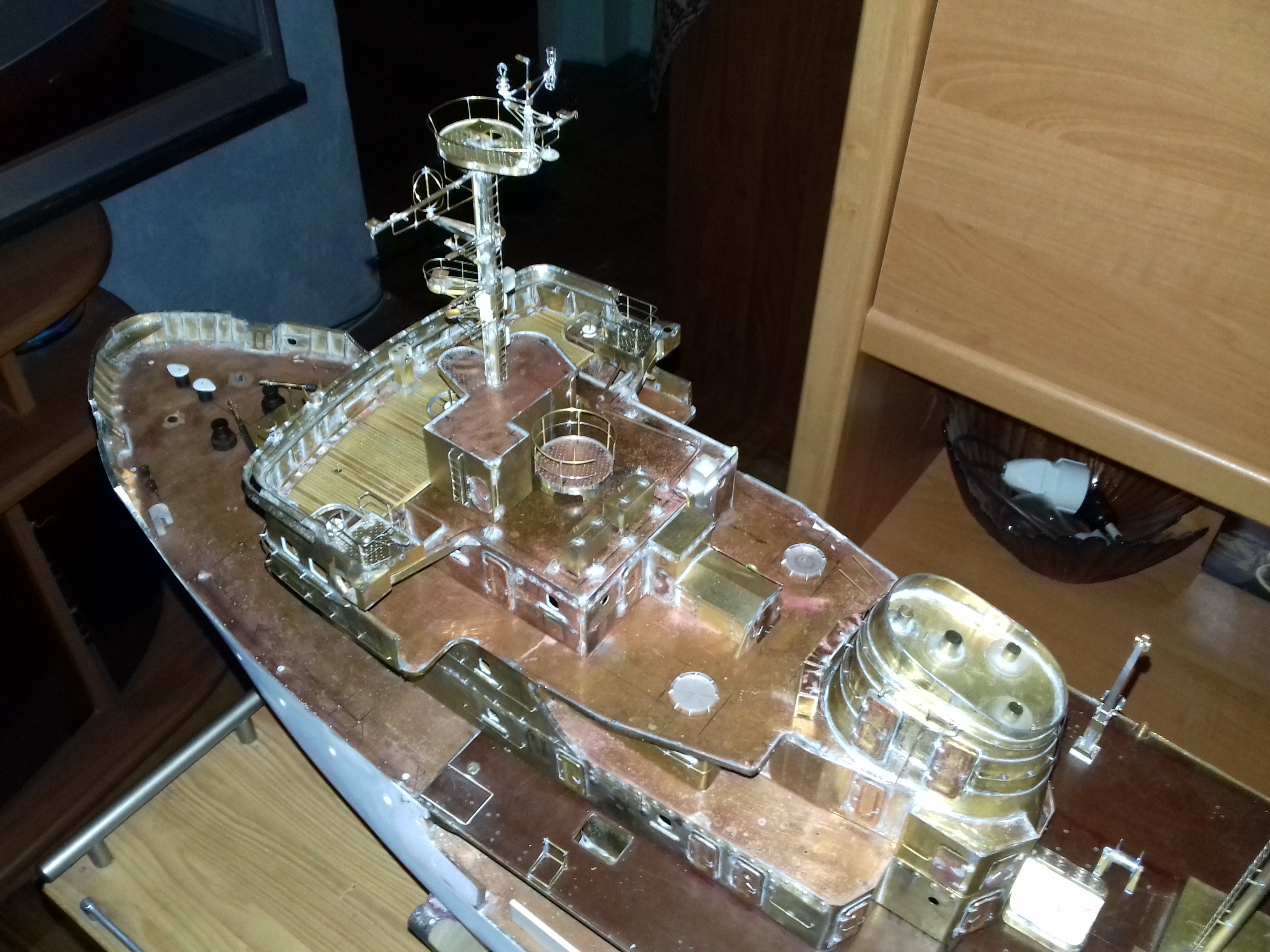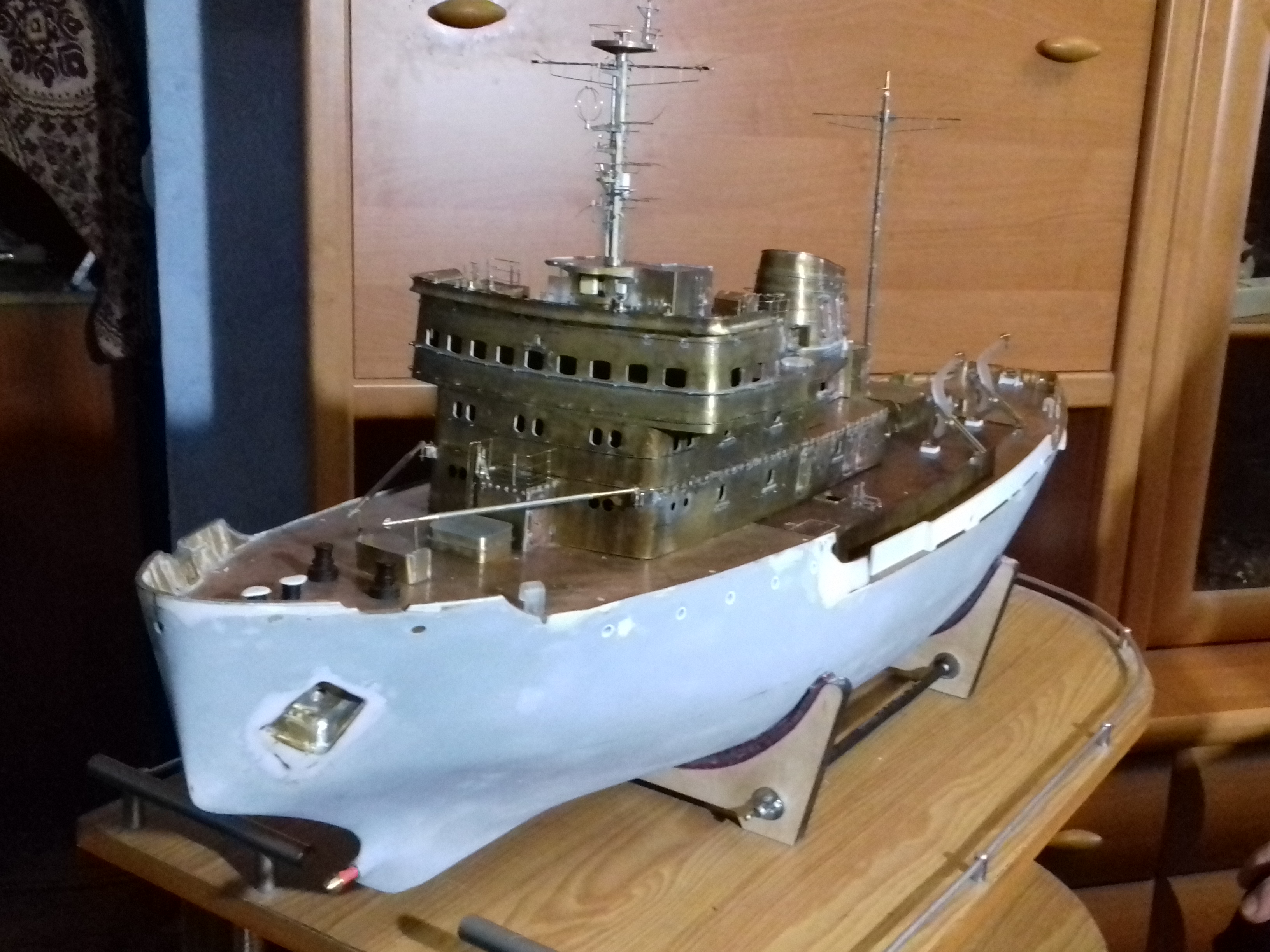 Водоизмещение модели в 6 кг позволило построить корпус по наборной технологии.