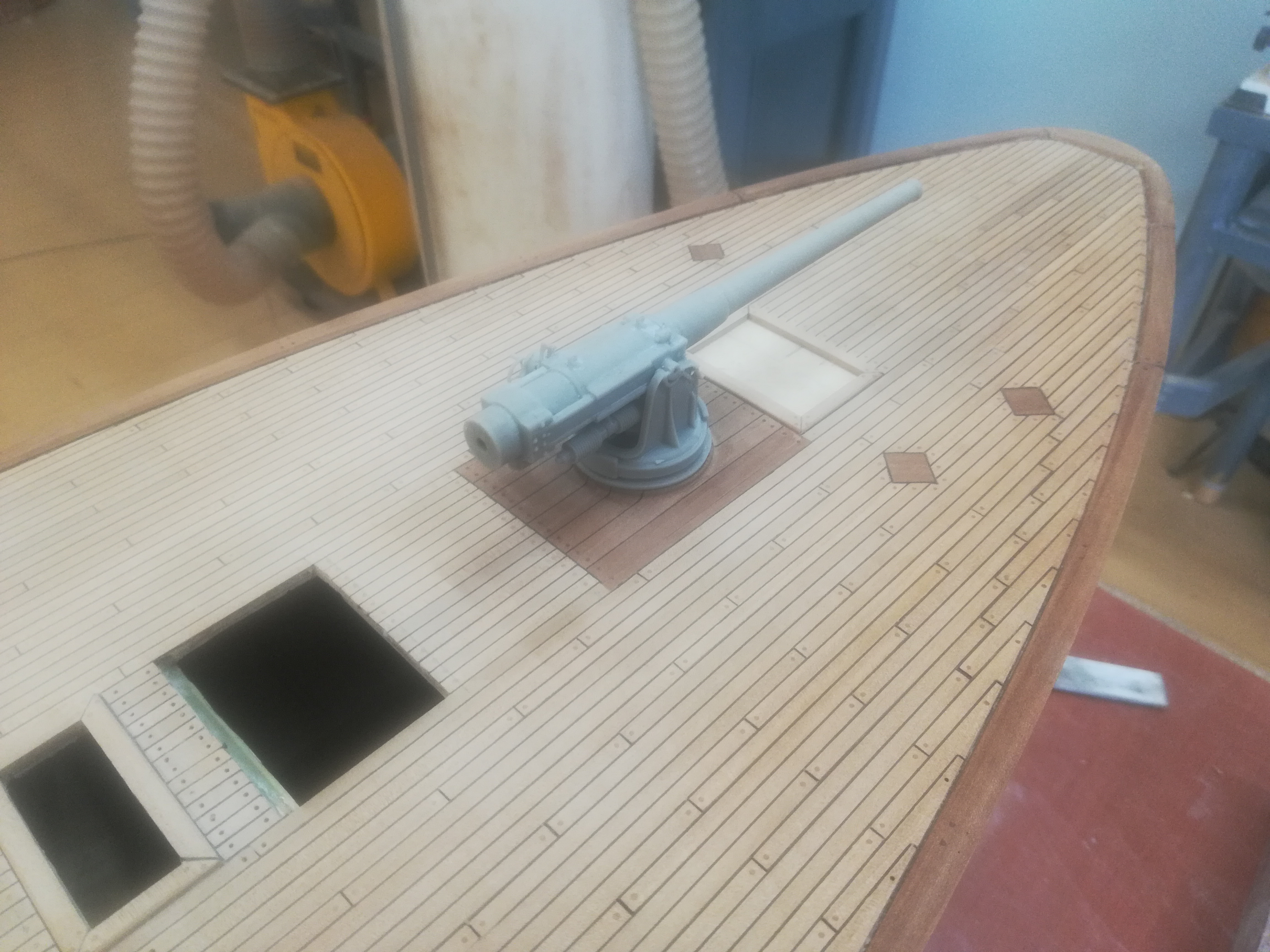 Обноса светового люка, за шестидюймовкой, пока не будет. Через него буду как то заталкивать и устанавливать 75-мм. носовые пушки.
