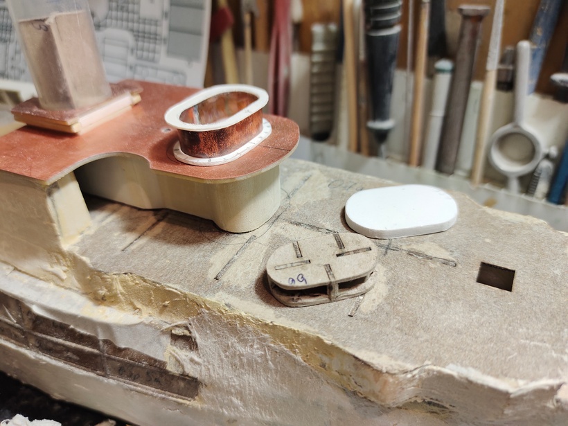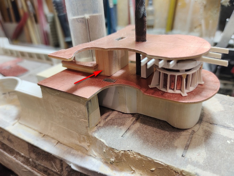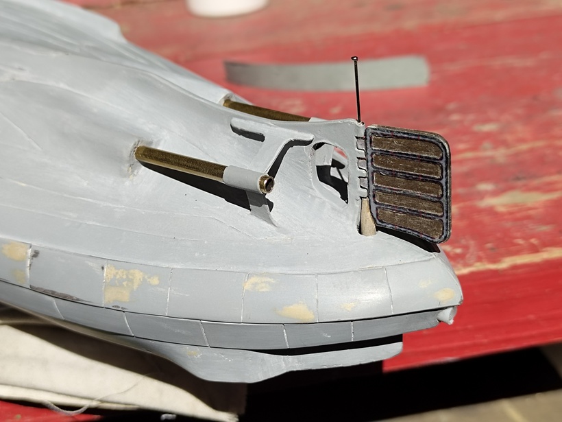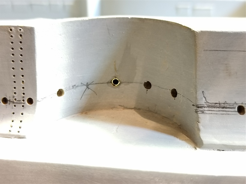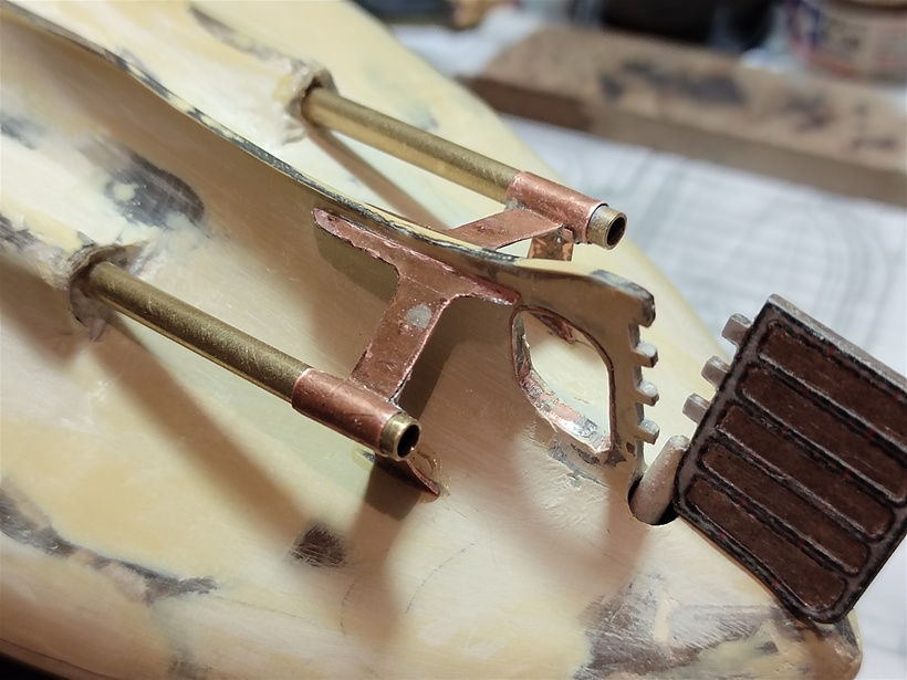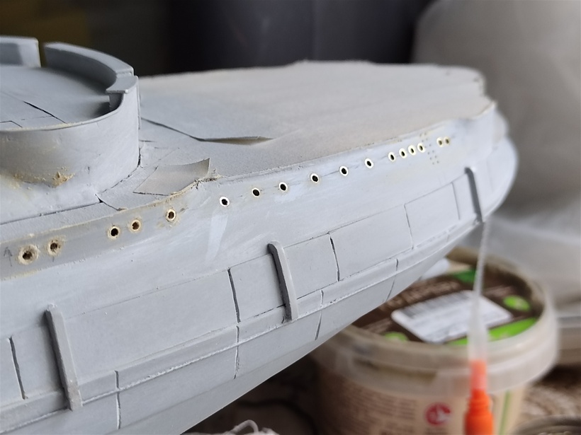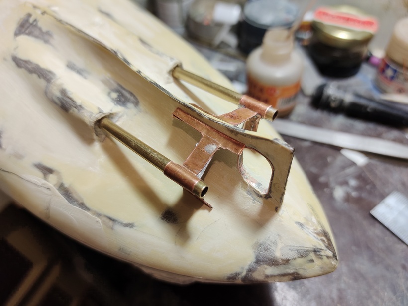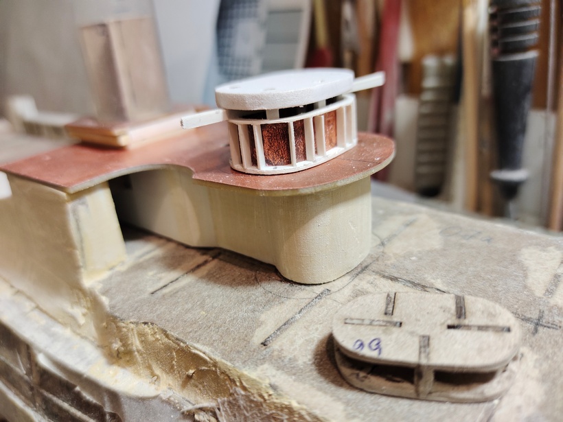 Затем установка "ресничек". До этого выточил и установил якорные клюзы с крышками.