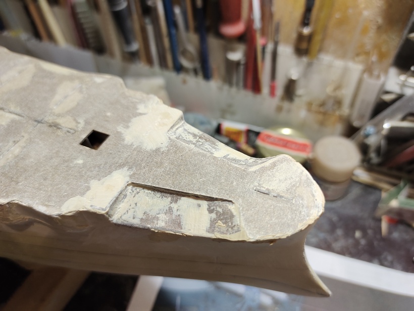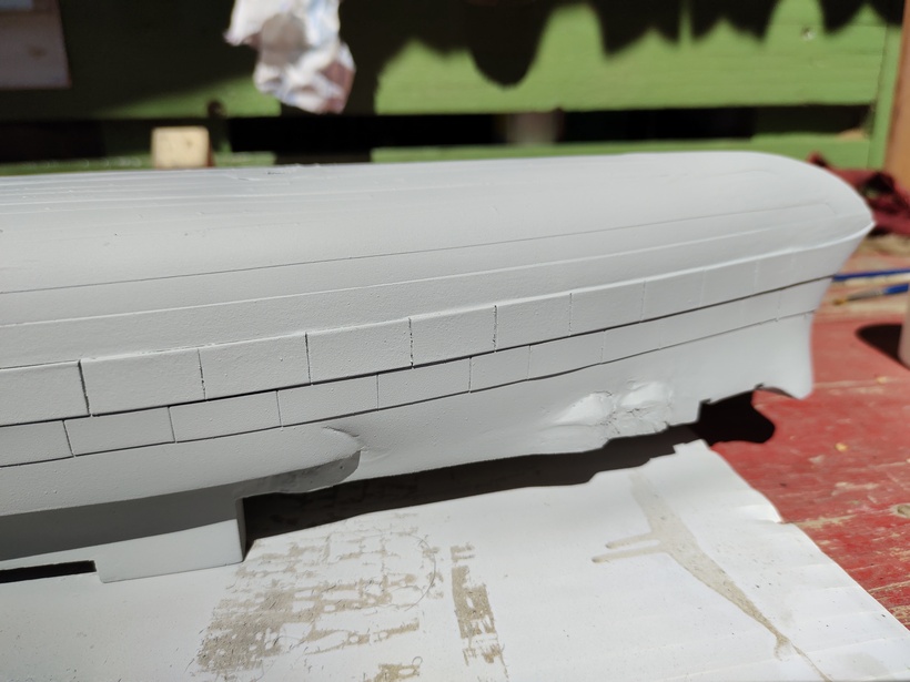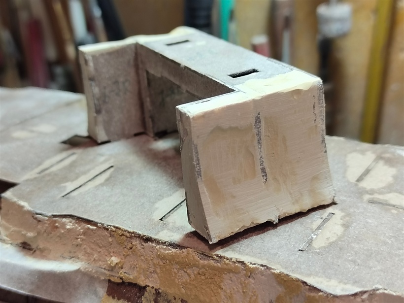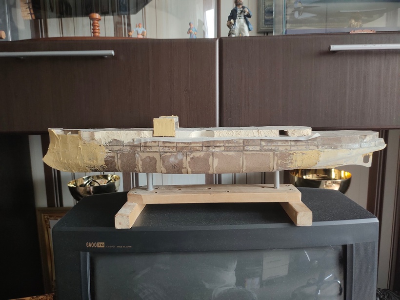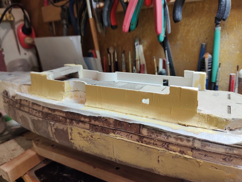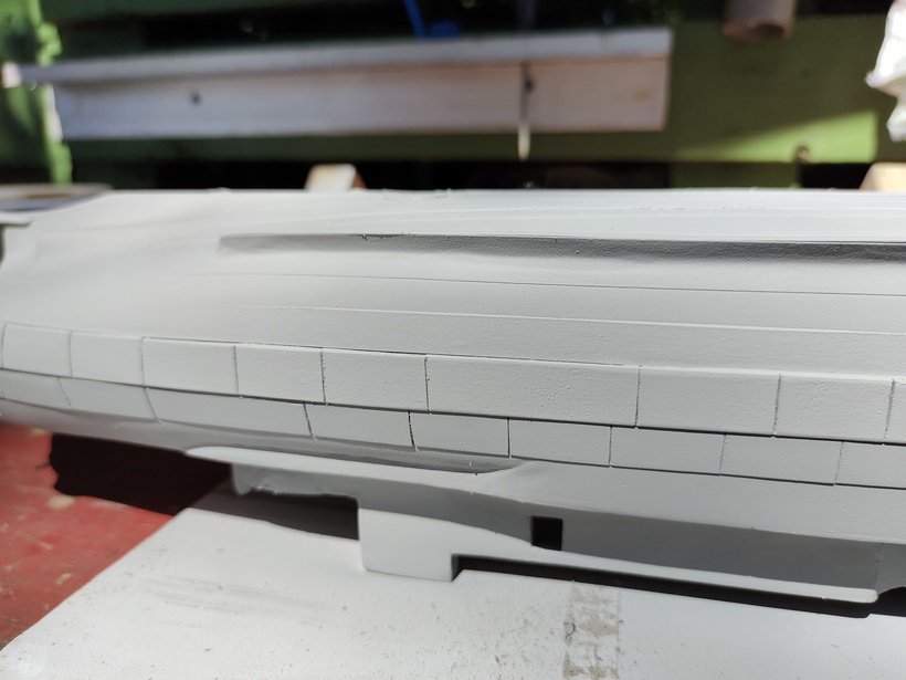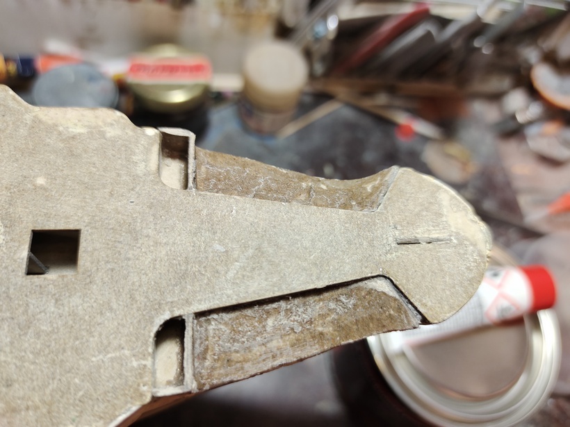 После подготовки корпуса нанес броневые пояса. Основной (нижний) из того же картона, что и корпус.