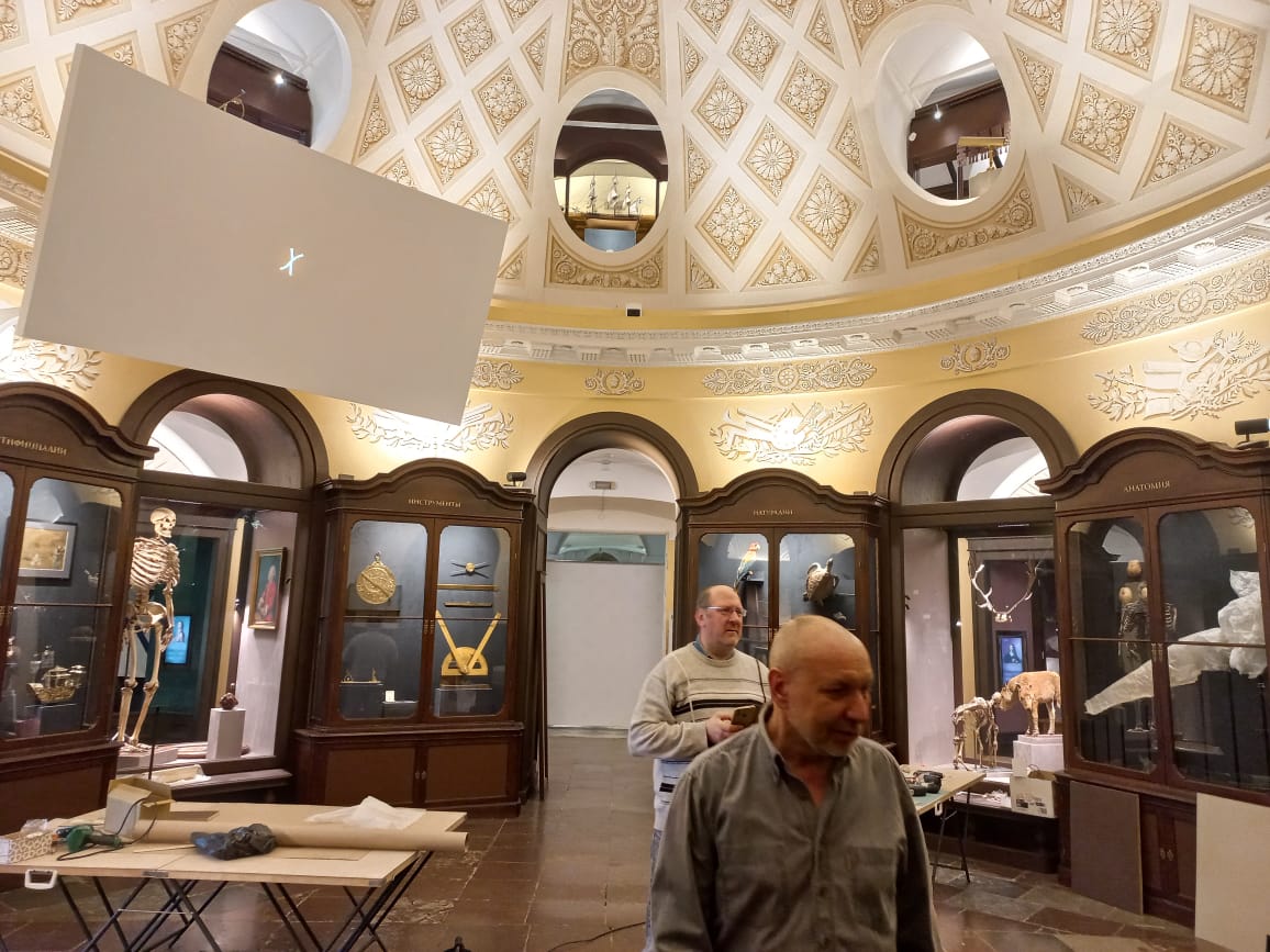 Теперь стоит в Кунцкамере, на втором этаже, экспонат постоянно действующей выставки, посвященной освоению Камчатки. По условиям заказчика модель должна была стоять так, чтобы её было видно и с первого этажа. Они художники, они так видят