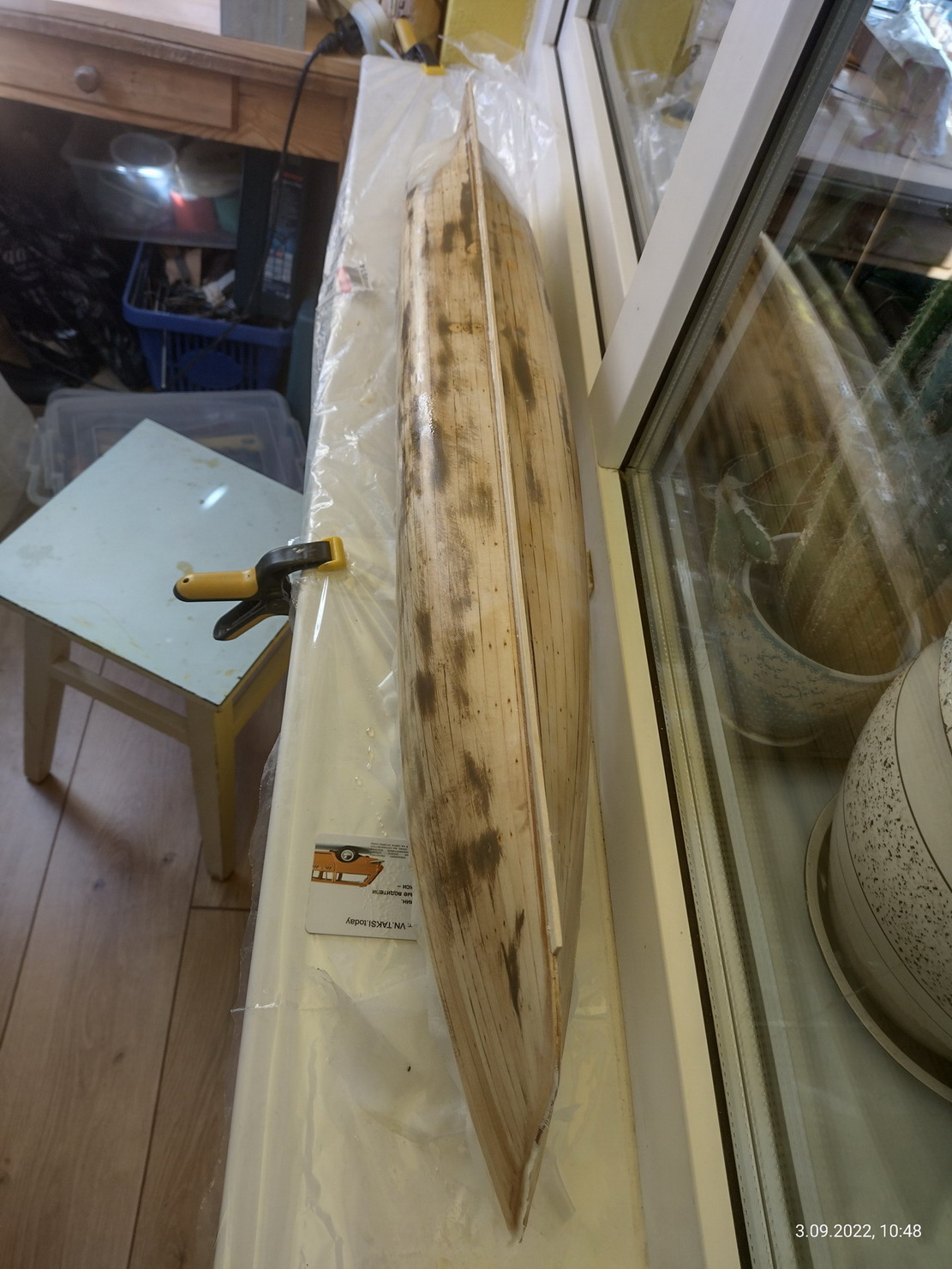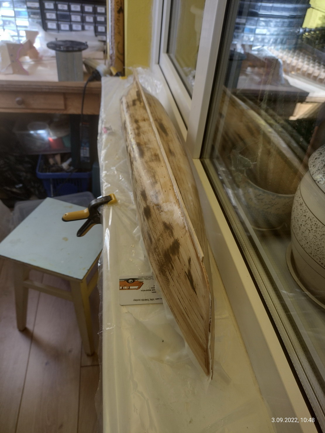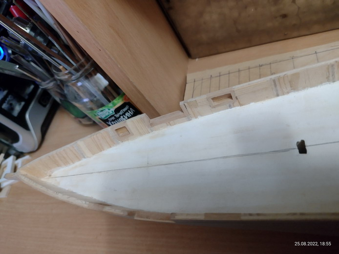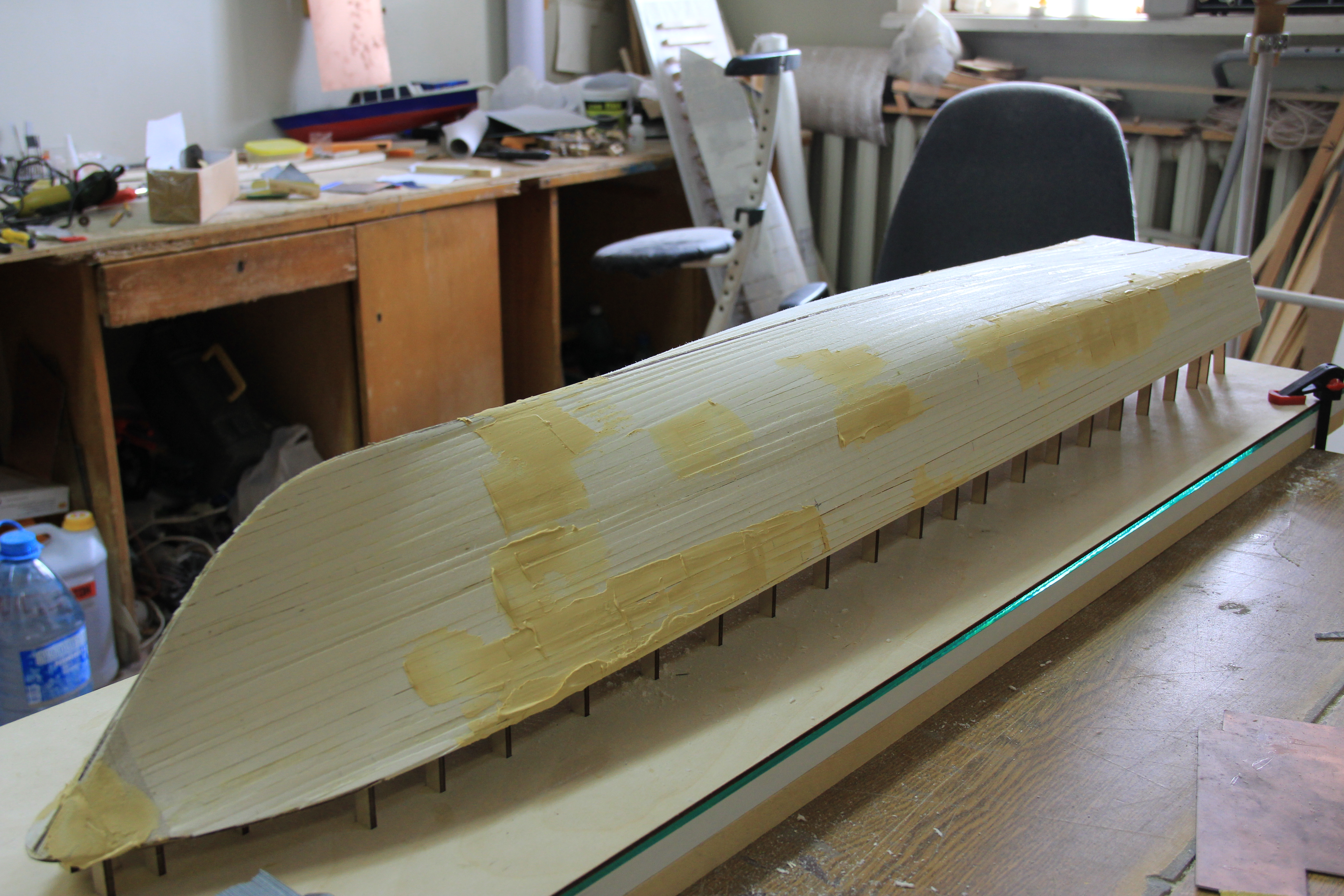На Азии я именно так и поступлю, после оклейки корпуса. Хотя там я сделал классическую малковку. Это из-за того что у нее корпус был металлический и если заполнять промежутки между шпангоутами чаками, то набегает большая толщина фальшборта.
