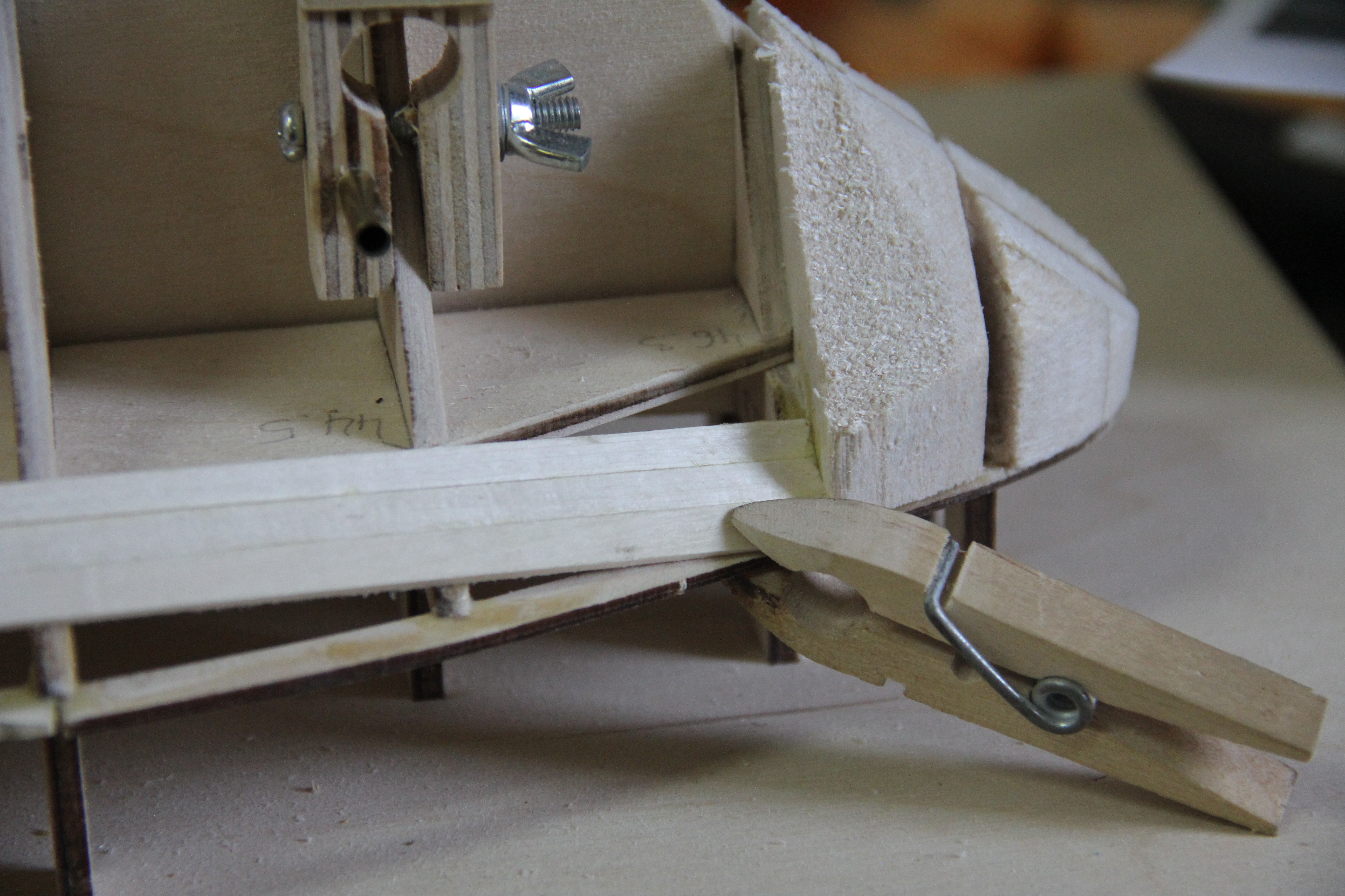 Мне нравится делать шпангоуты пустотелыми, чтобы можно было притягивать рейки к шпангоутам не коля торцы.