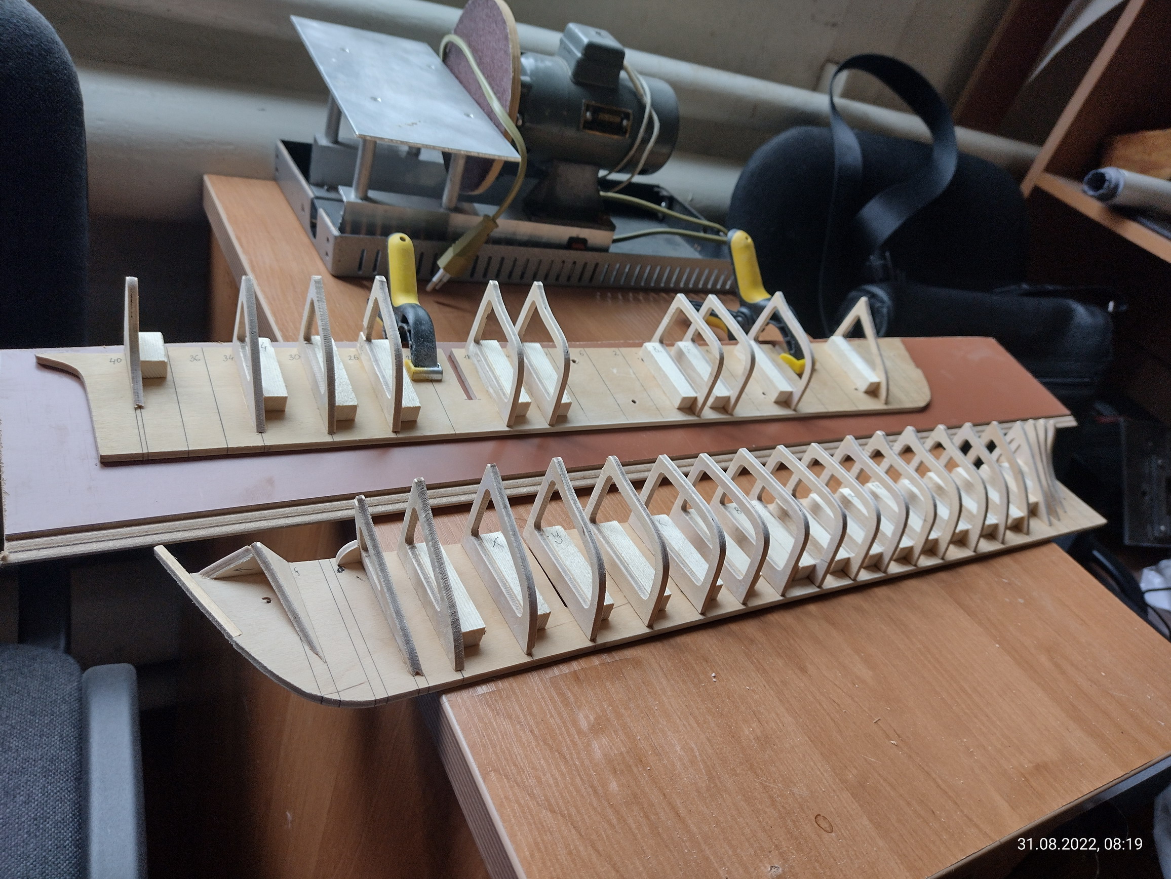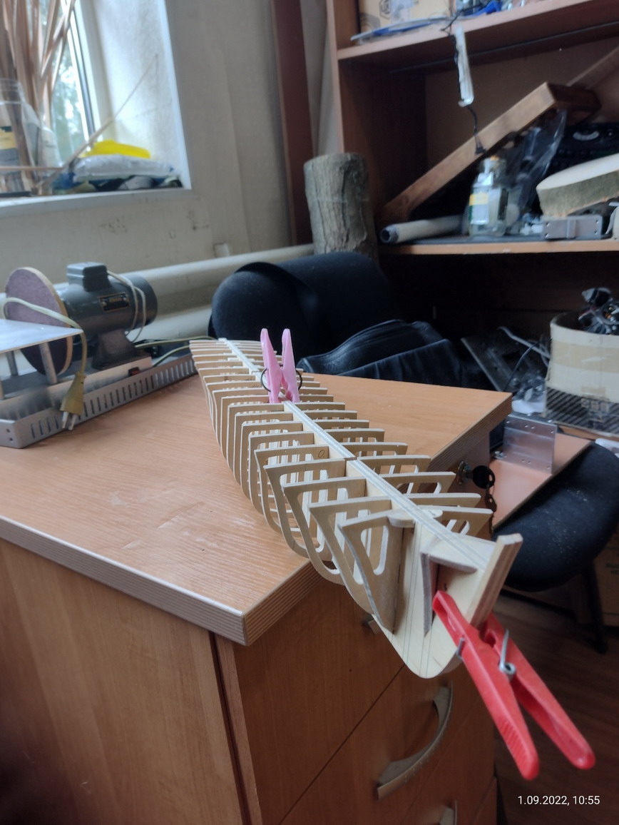 Ладно. Пока пилю набор. На шпангоуты клею усиление на призме. На носовые с кормы. На кормовые с носа.