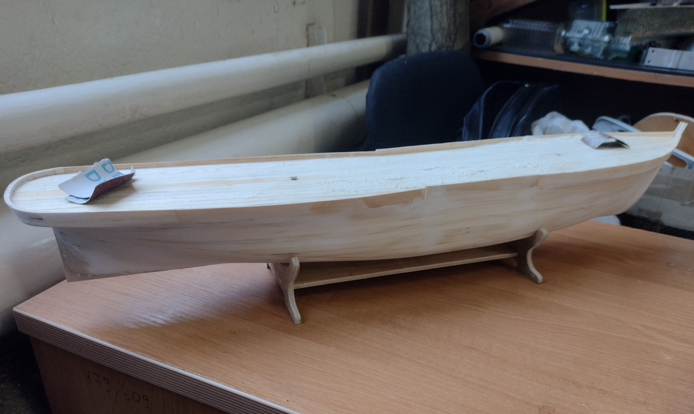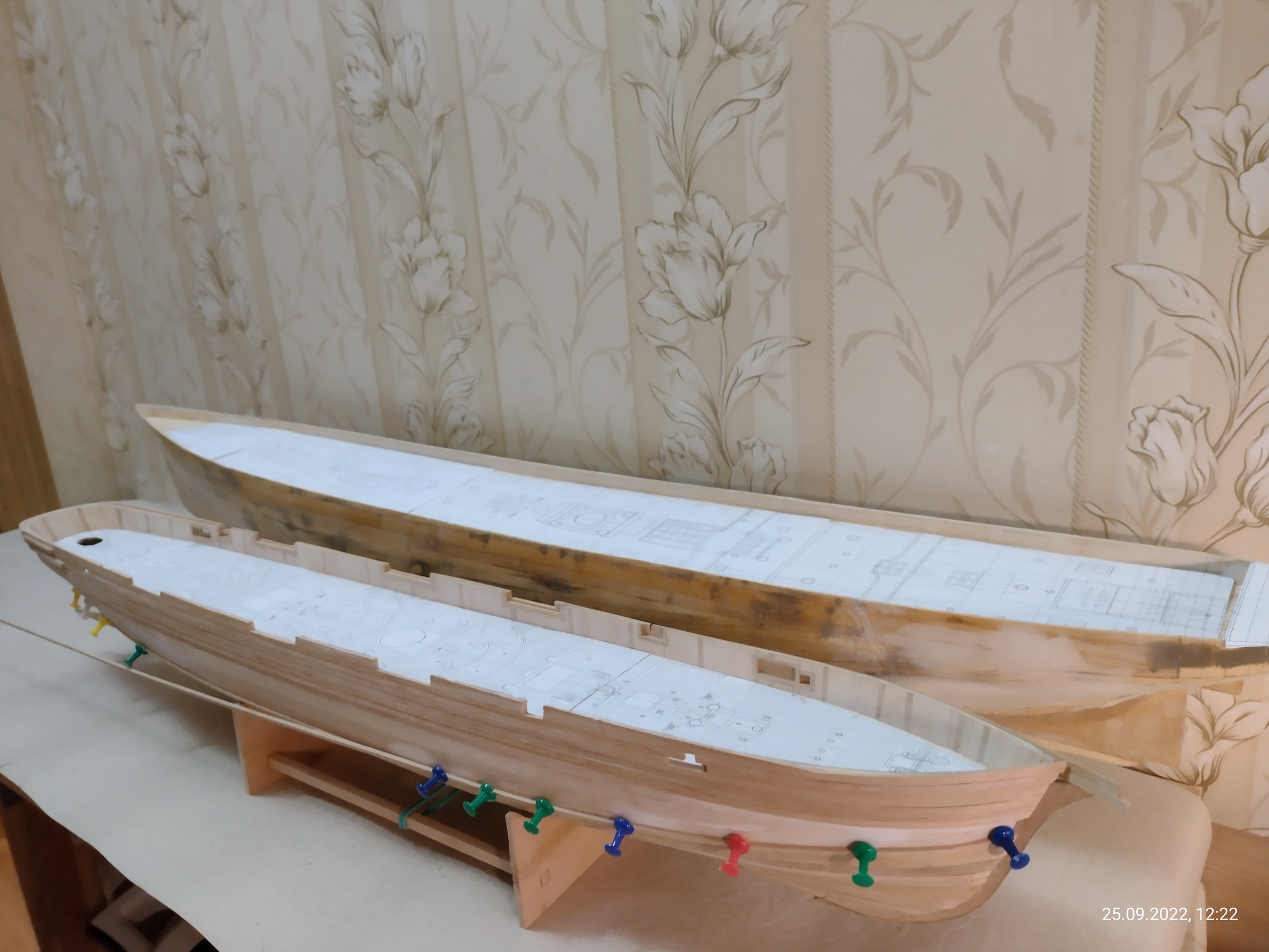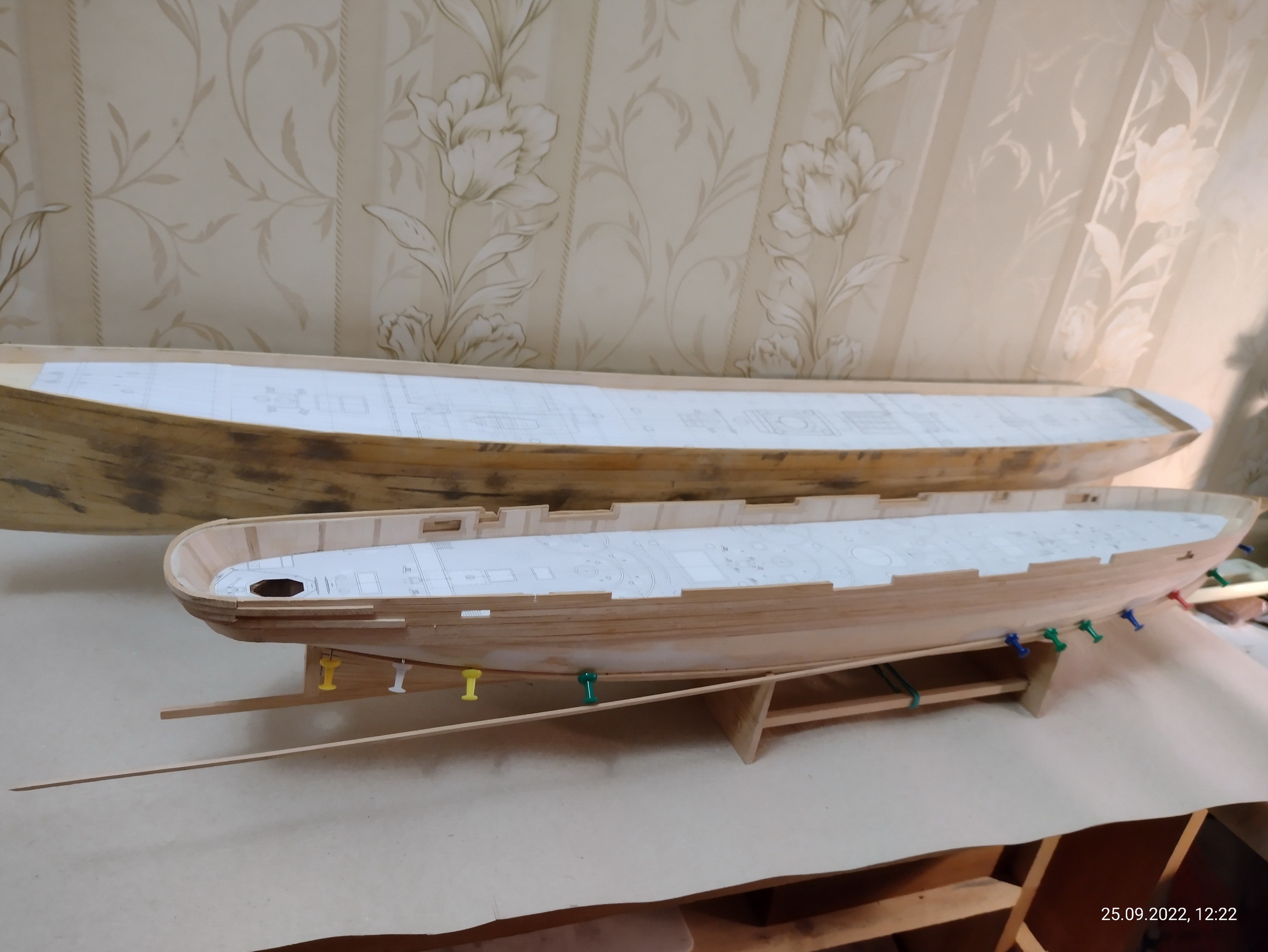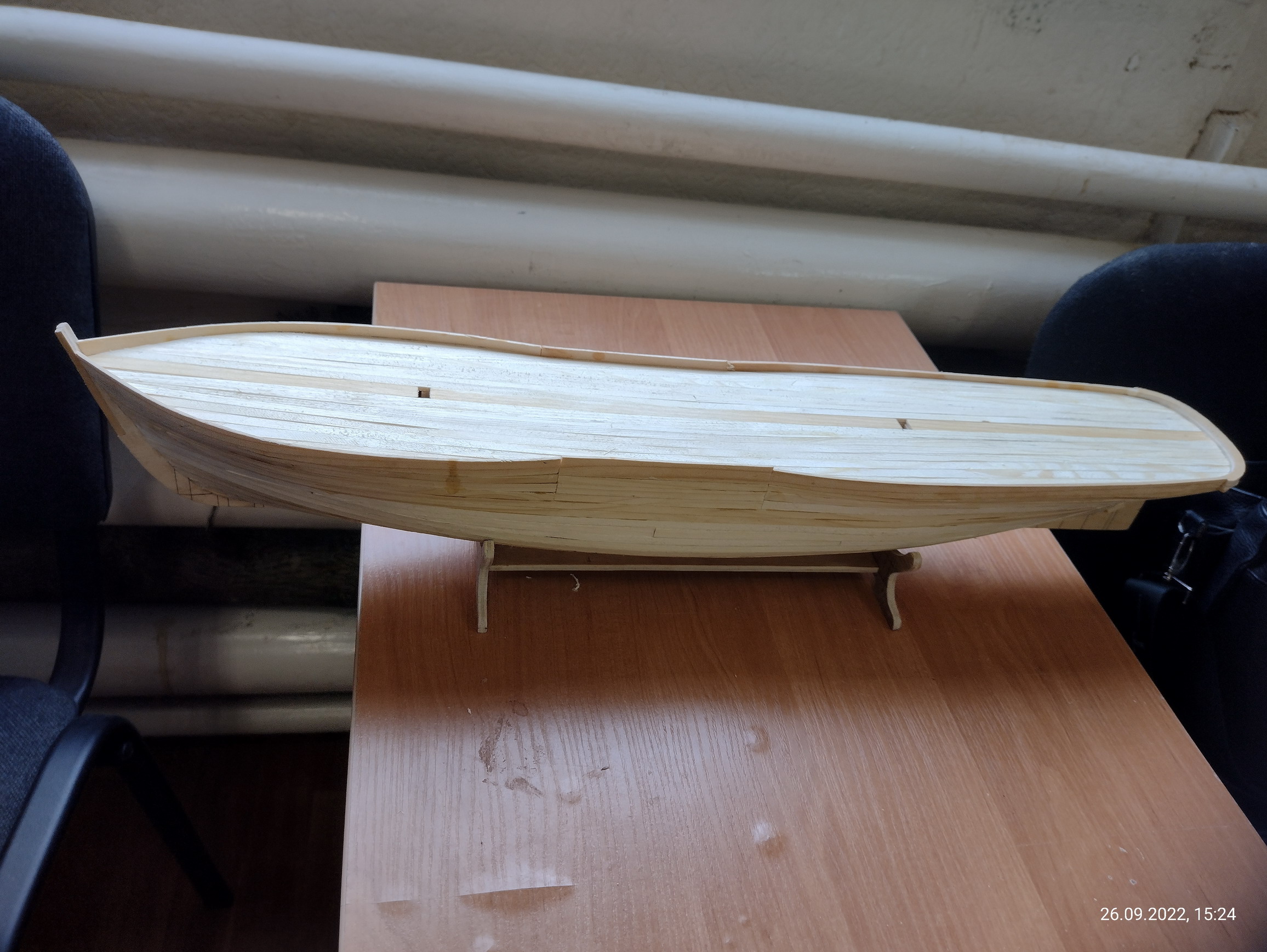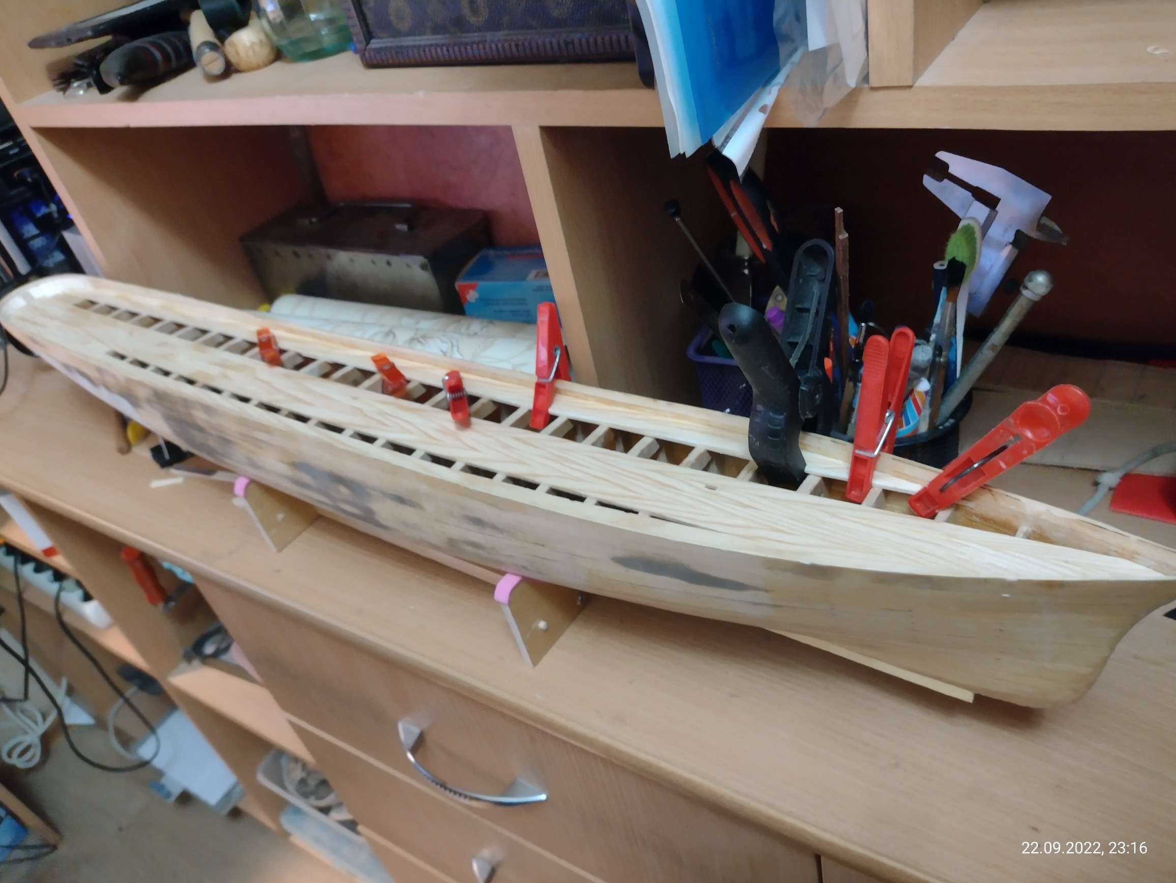 Кстати, надо будет и пароход сфотографировать при случае. Он у меня на работе подзавис. Закончилась длинномерная ольха для чистовой обшивки. Но это поправимо.