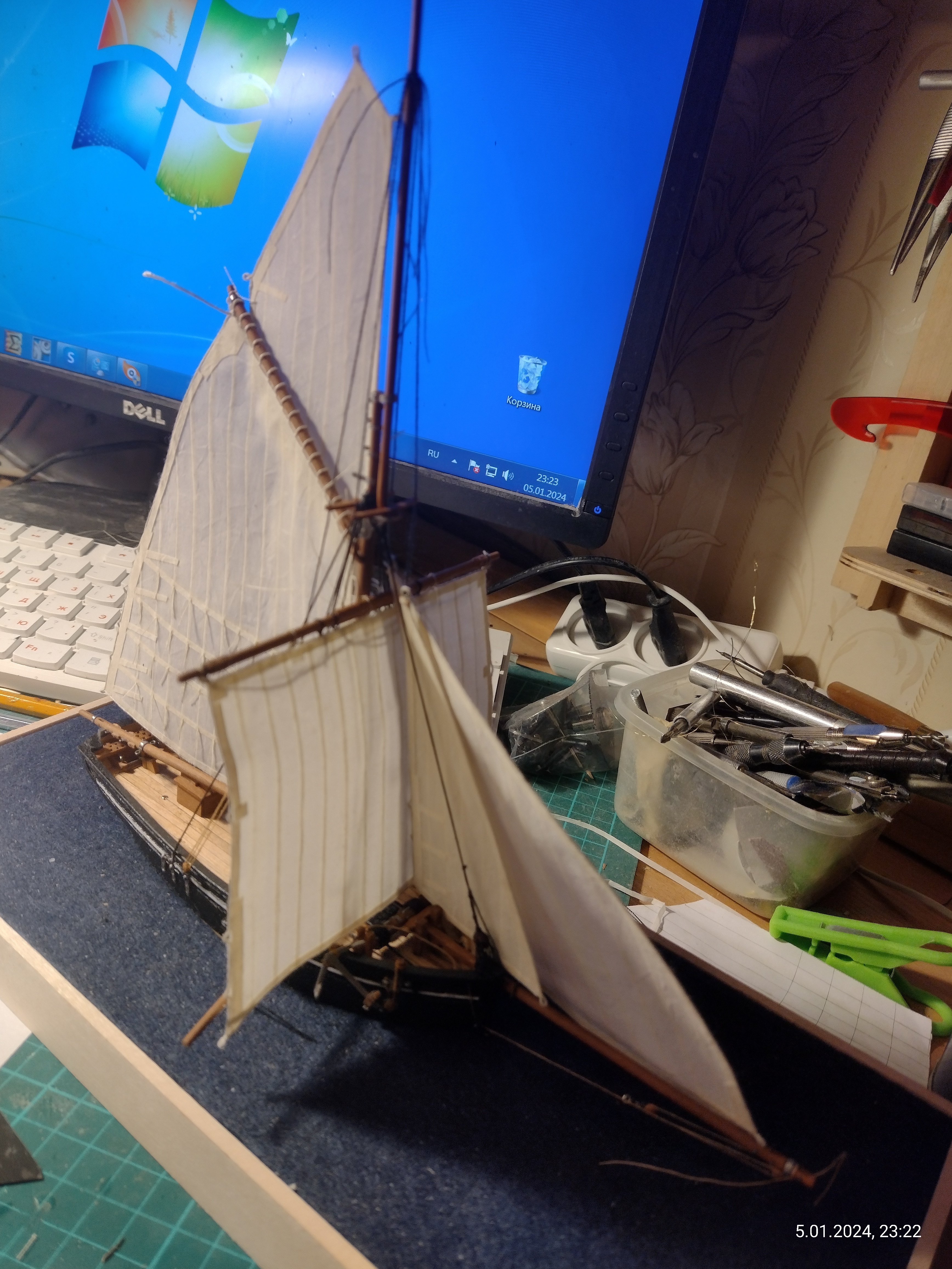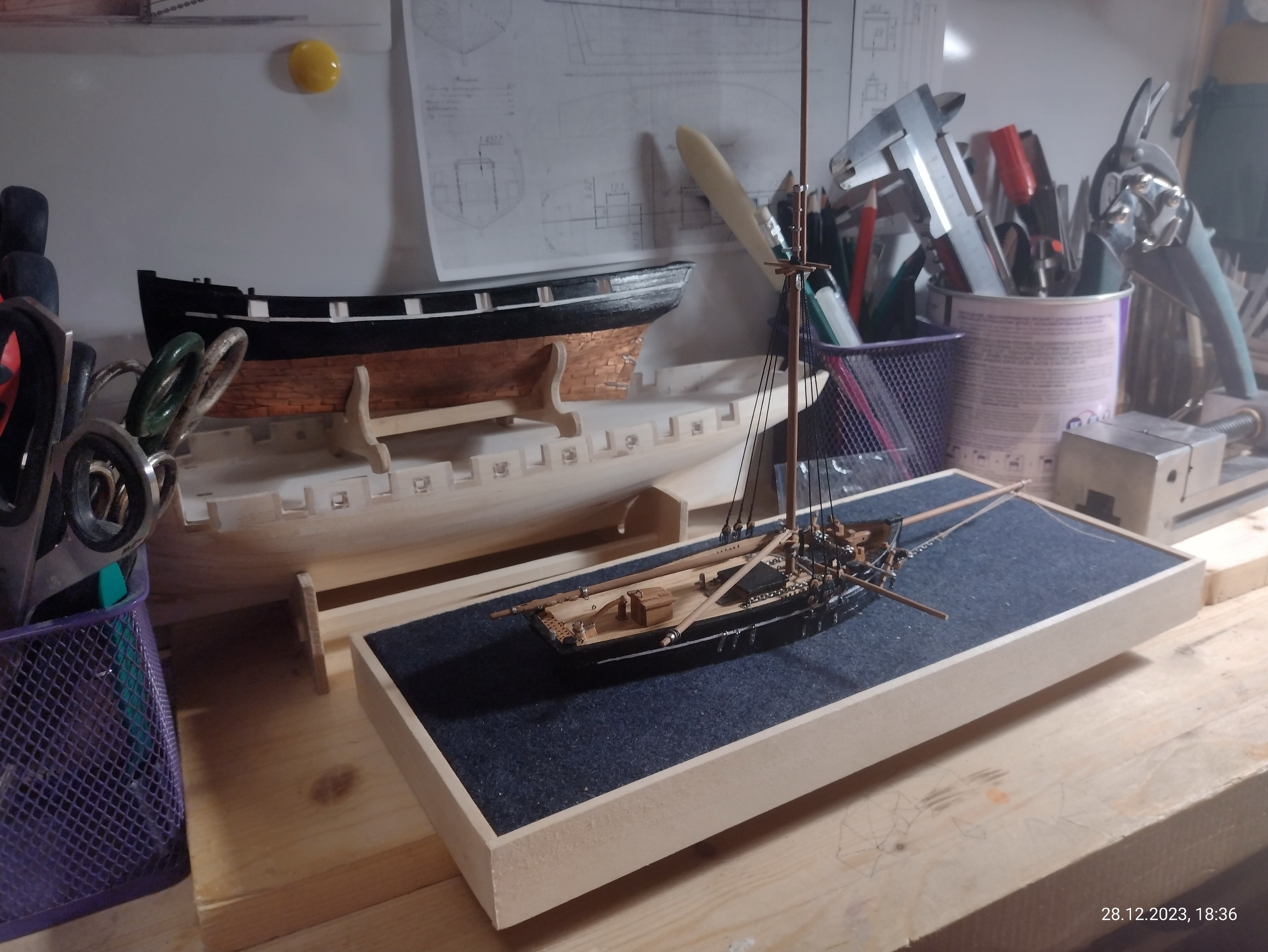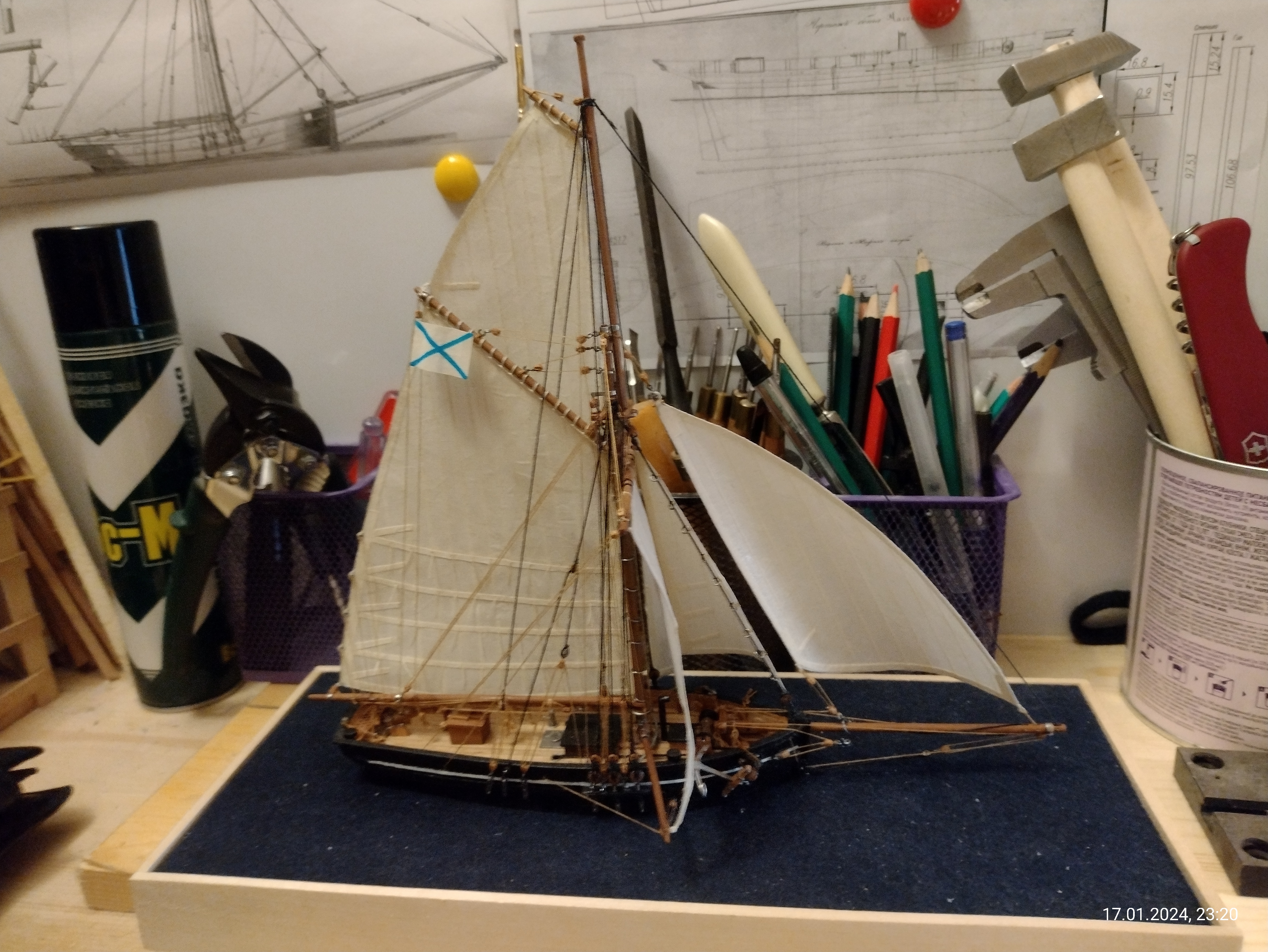Есть сильное желание сделать всё в полном парусном комплекте, т.к. в оснастке вся фишка этого корабля, бот-тендера. Да и брифок не частый гость на моделях.