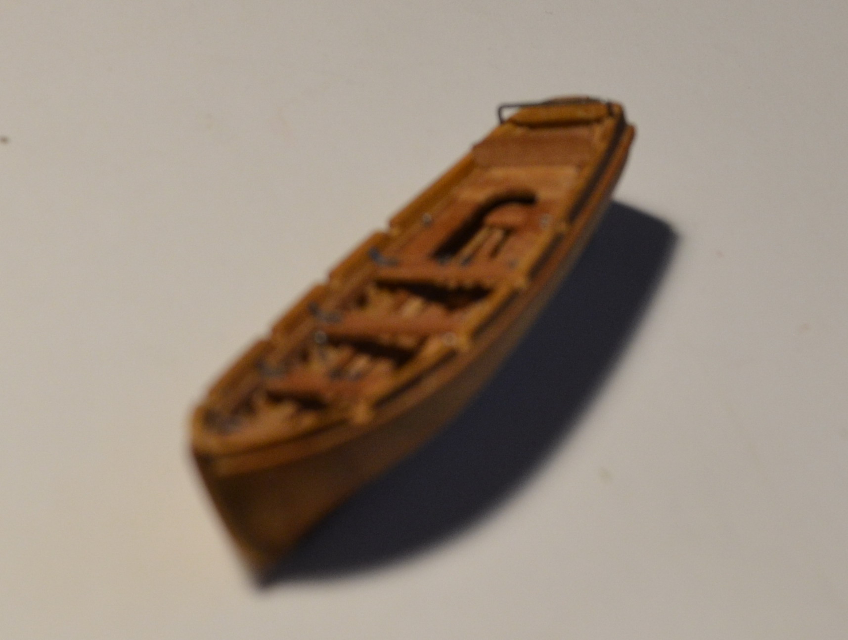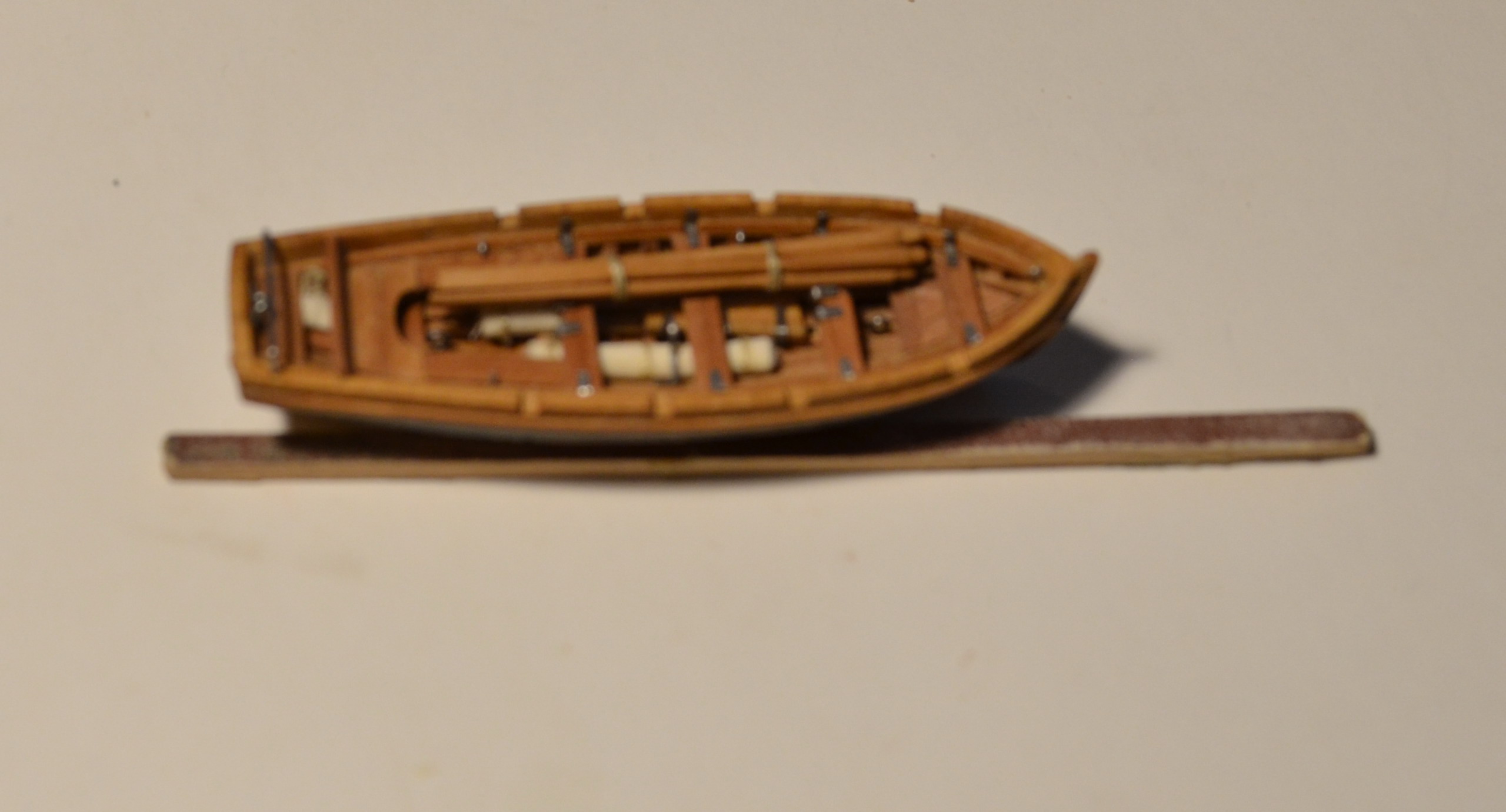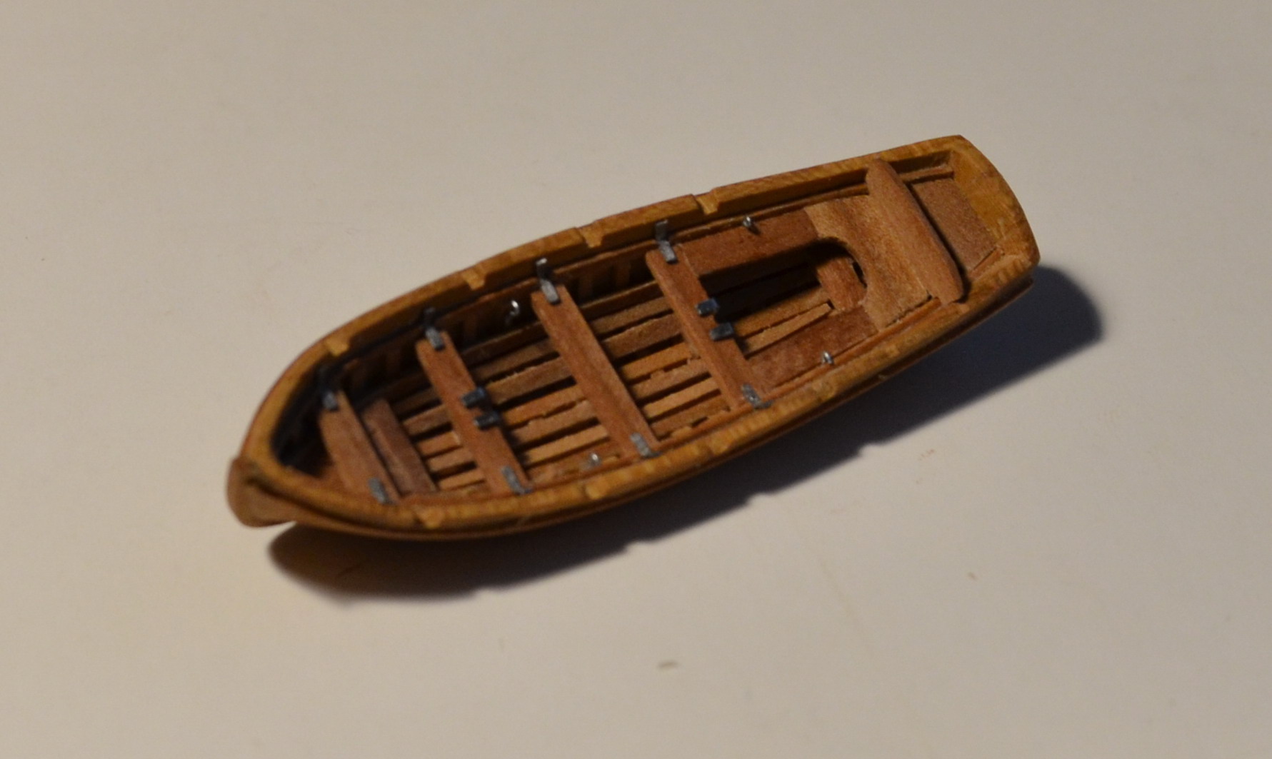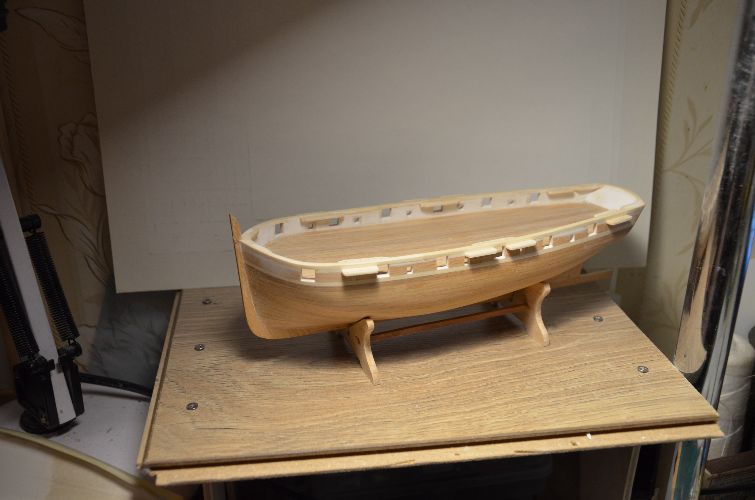 Следующий этап это установка скобяных изделий (их там масса), изготовление рангоута, руля с румпелем, паруса (парусов) в чехле, дрека (надо поискать как выглядел), и восемь весел.