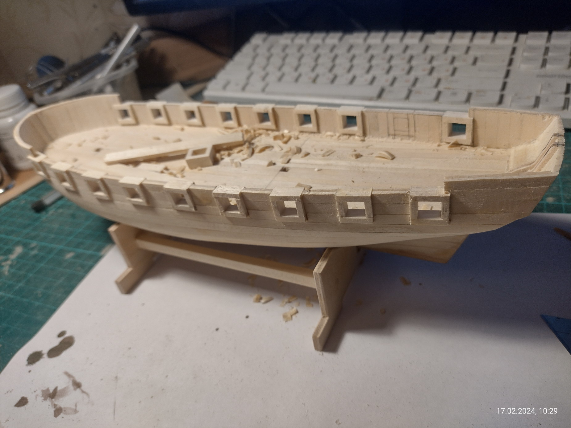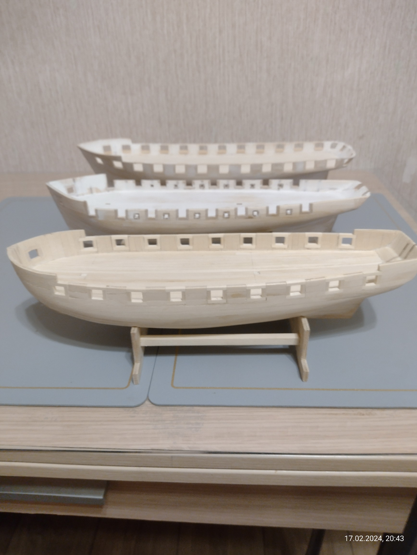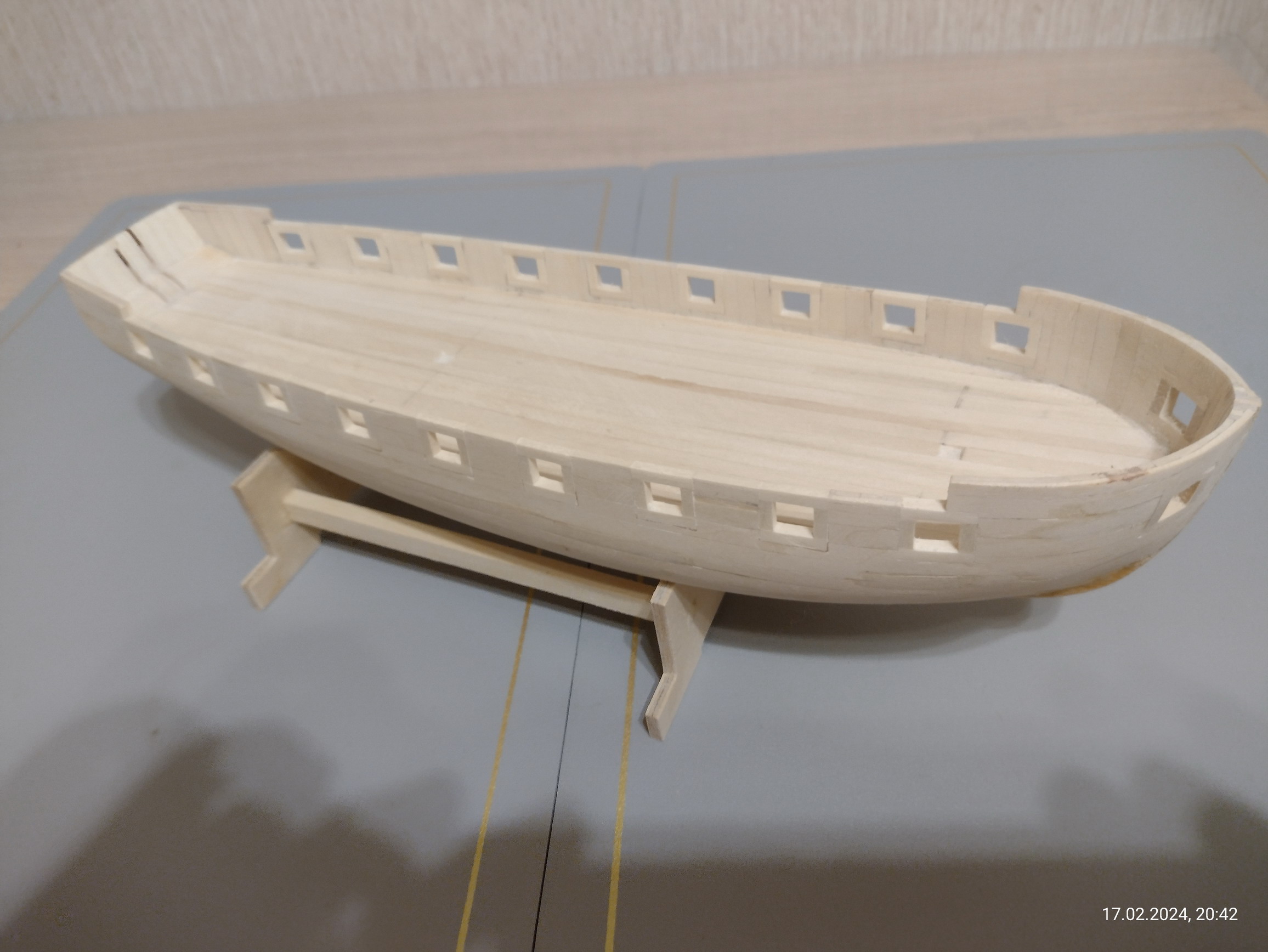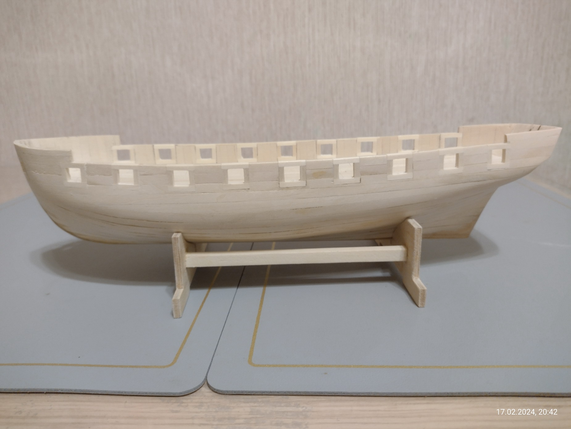 Закончил первый, наиболее простой этап постройки. Теперь, при некоторой доли фантазии, уже можно примерно представить, как в будущем будет выглядеть бриг.