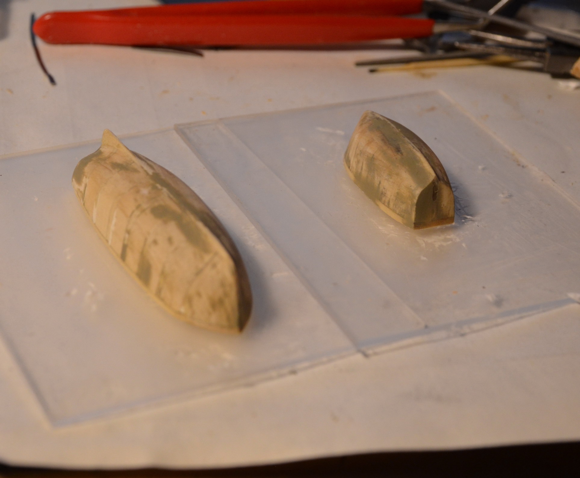 Промежутки между шпангоутами заполнил чаками. Т.е. сделал обычную болванку. Сделана она по наружной поверхности обшивки, без отступов и т.п.