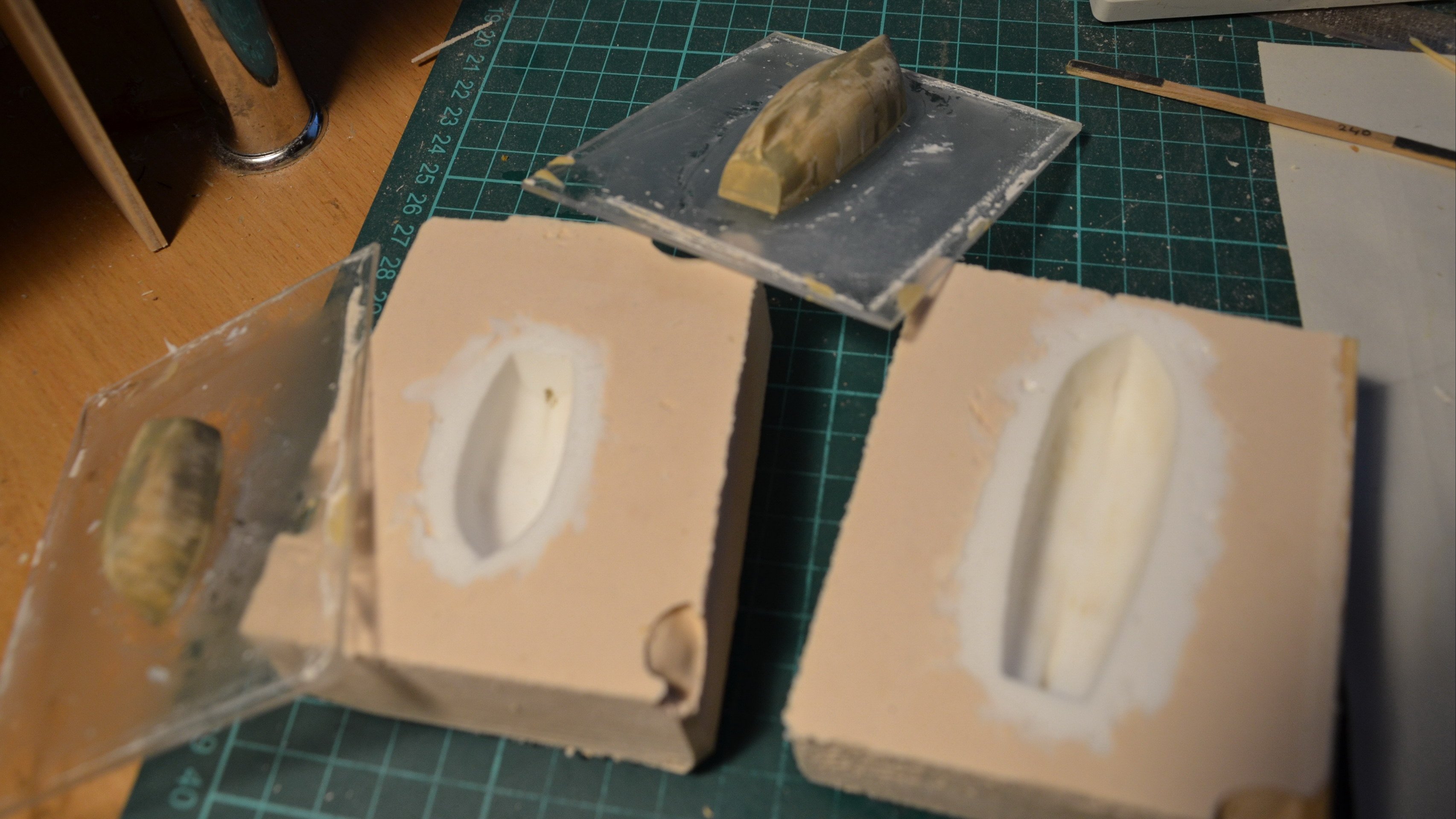 А тем, что в ней можно сразу сделать острые оконечности, рельефные сломы борта, реданы, киль и т.п. Теоретически даже разметку обшивки. Правда у меня пока она не получалась, из-за большого количества пузырей. Это надо над вакуумной камерой подумать. Но там где корпус был без дефектов, выглядело отлично.