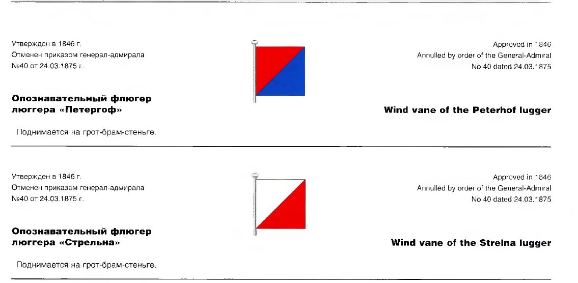 Для самого люгера сделал вымпел согласно справочнику. Он поднят на грот-стеньге. На шлюпку поставил четыре флюгарки. Красно-синяя диагональ.