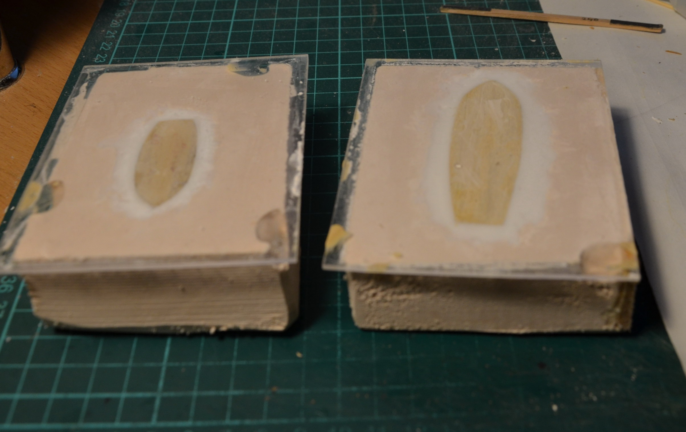 На болванки нанес разделительный слой. Пользуюсь воском, растворенным в керосине, но последнее время стал потихоньку переходить на силиконовую разделительную смазку.