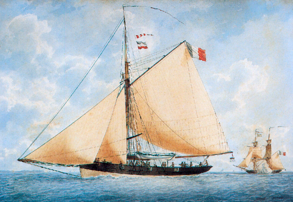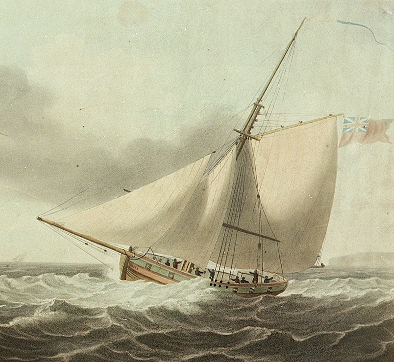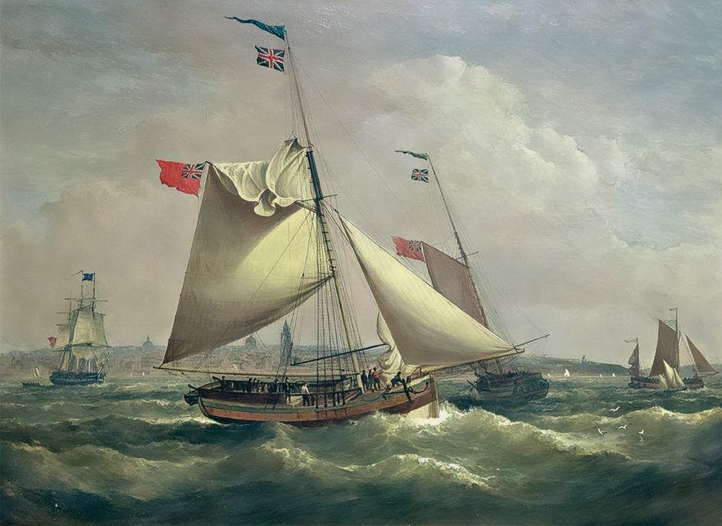 Есть много картин первой половины 19-го века со стандартным сюжетом. Таможенный куттер преследует контрабандиста, таможенный куттер уходит от контрабандиста, английский таможенные куттер сцепился с французским таможенным куттером, чтобы выяснить, чья таможня круче и т.п.