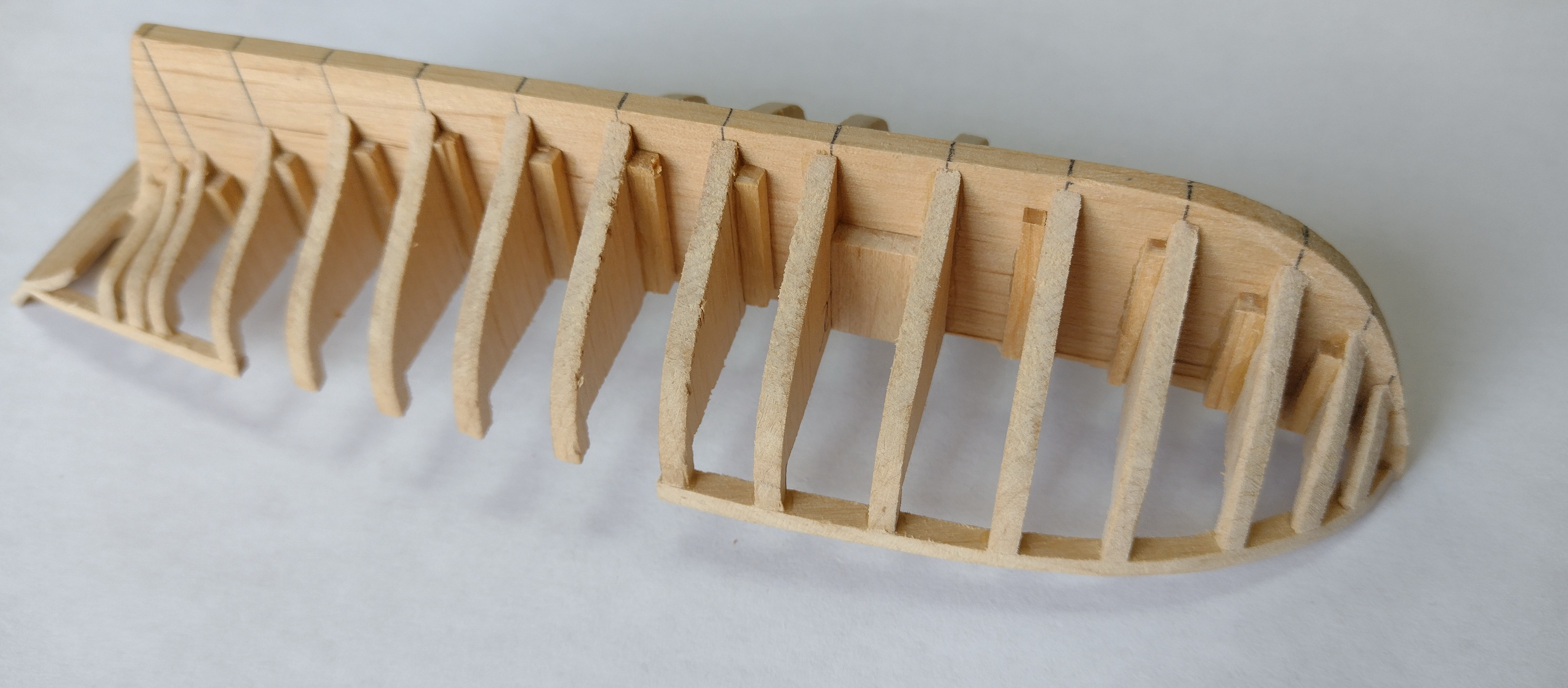 Кстати, шпангоуты располагаю линией ДП только вдоль волокон. Чтобы топтимберсы не отломились. Это же все миниатюрное, как комариная душа.