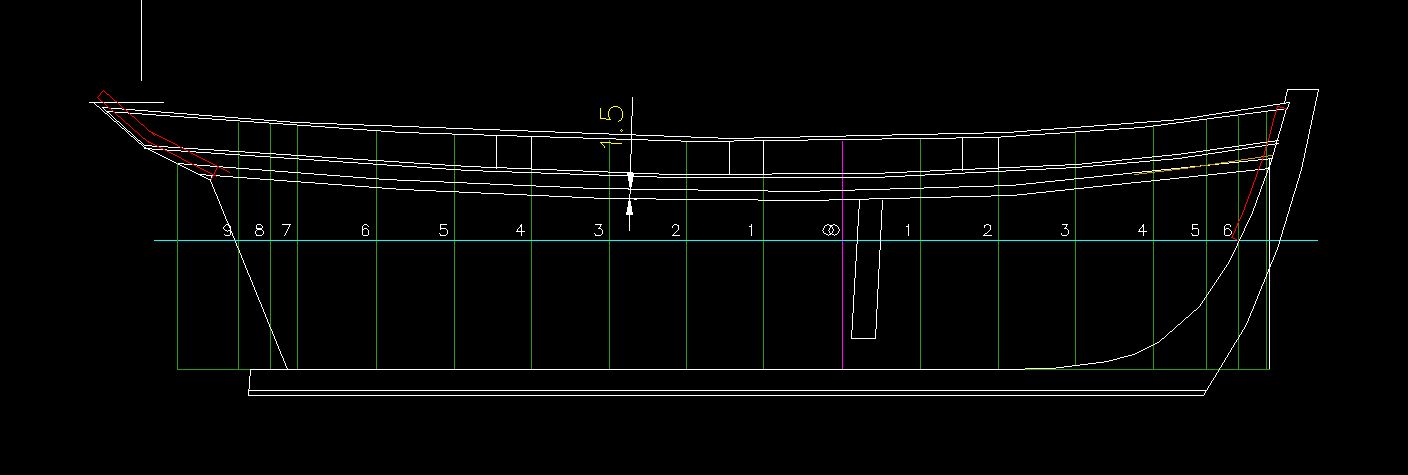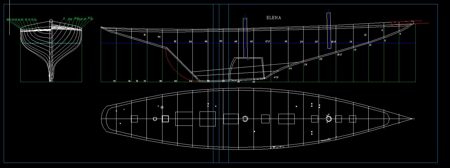 Как уже говорил, на начальной стадии работы прочертил теорию по французскому чертежу. Ее наличие в векторном виде серьезно упрощает работу. Можно выносить отдельные шпангоуты, добавлять недостающие, мерить размеры, по чертежам деталей можно сделать 3Д модели под печать, масштабировать и вообще, работать с чертежом как захочется.