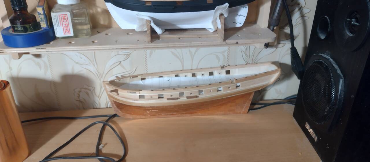 Это примерно треть всей работы. Еще треть это изготовление разной палубной мелочевки, деталей, вооружения и т.п. И заключительная треть это установка рангоута, такелажа, парусов.