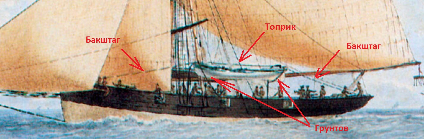 Так же на картине виден тип шлюпок. Это шлюпки с плоским транцем. По всей видимости что-то типа наших легких катеров или ялов.