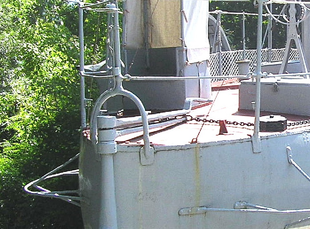 Но по факту , судя по фото, поставили балку аналогичную той что стоит на баке , кат-балку , и теперь на юте она называется шлюпбалка.