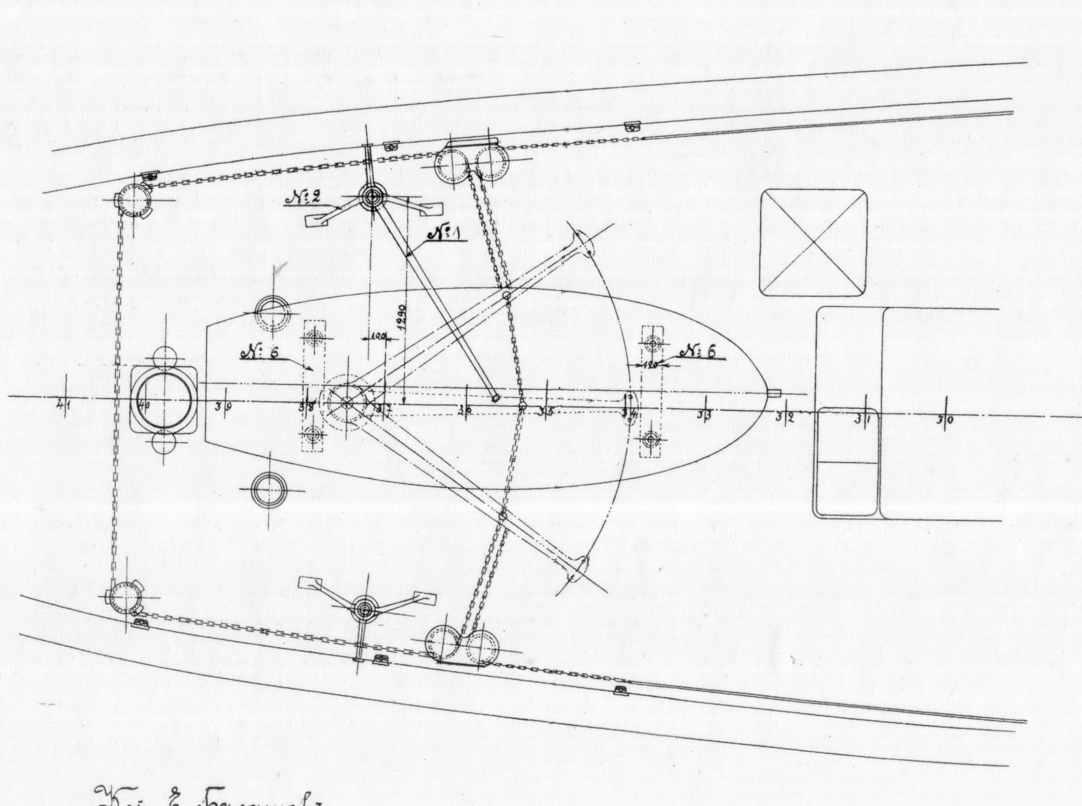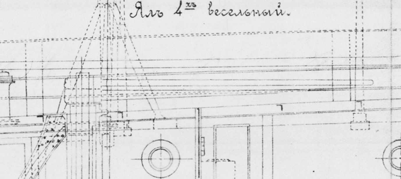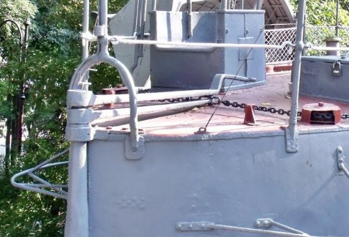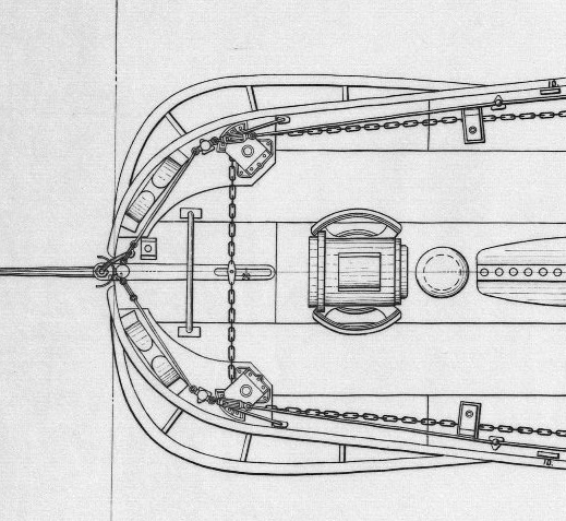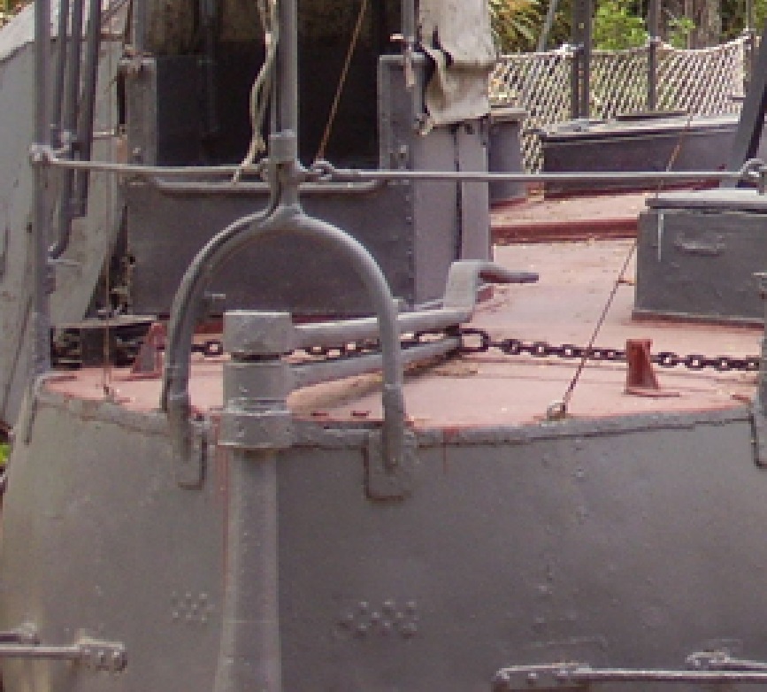 Вопрос - как крепился цепной штуртрос к румпелю? По аналогии с более поздними ЭМ , в проушину румпеля должна быть вставлена серьга и уже к ней цепляли штуртрос , но уверенности (как и чертежа) нет. Почти полный аналог этого узла на Пернове , может чего и у кого найдется?