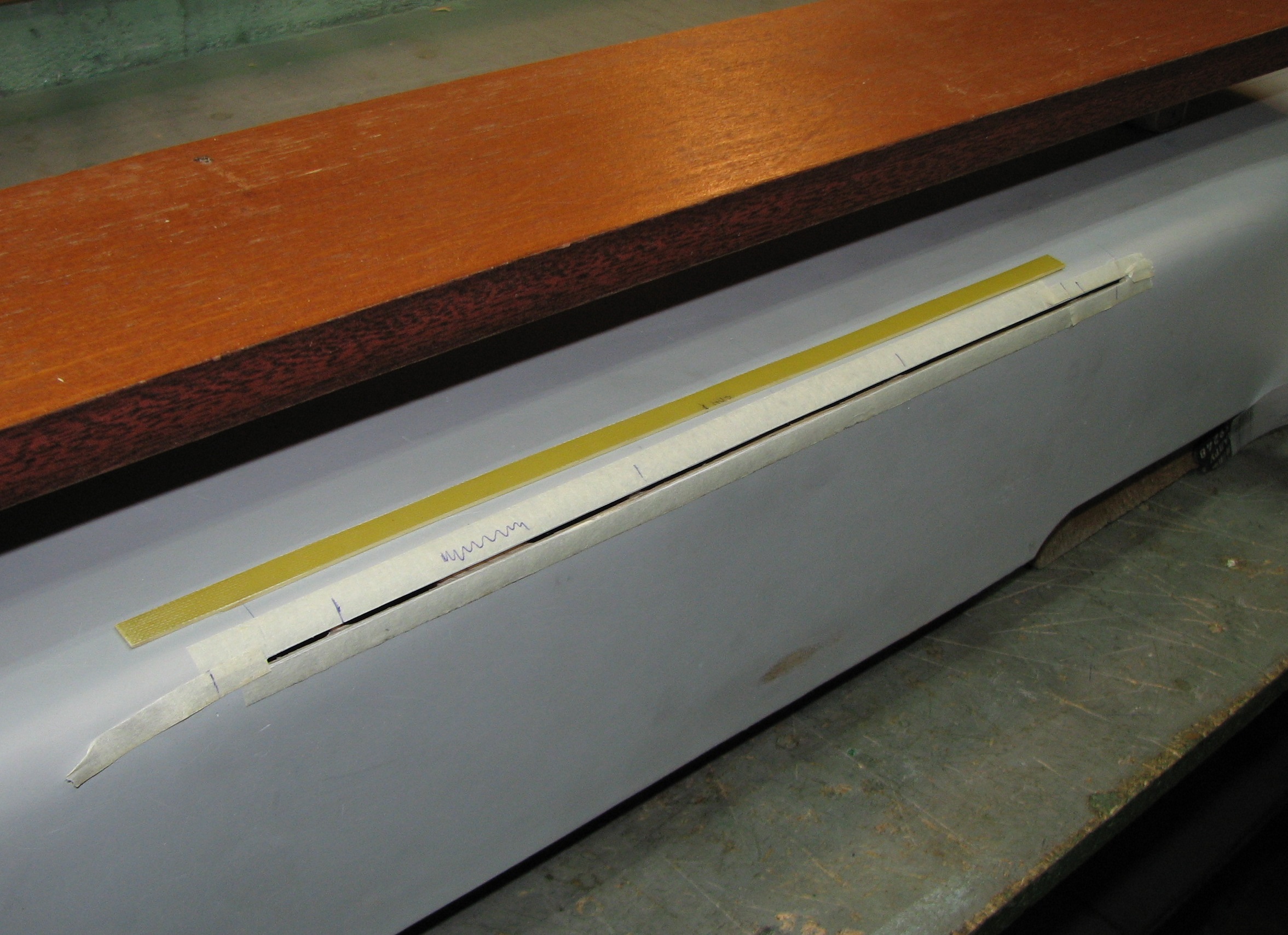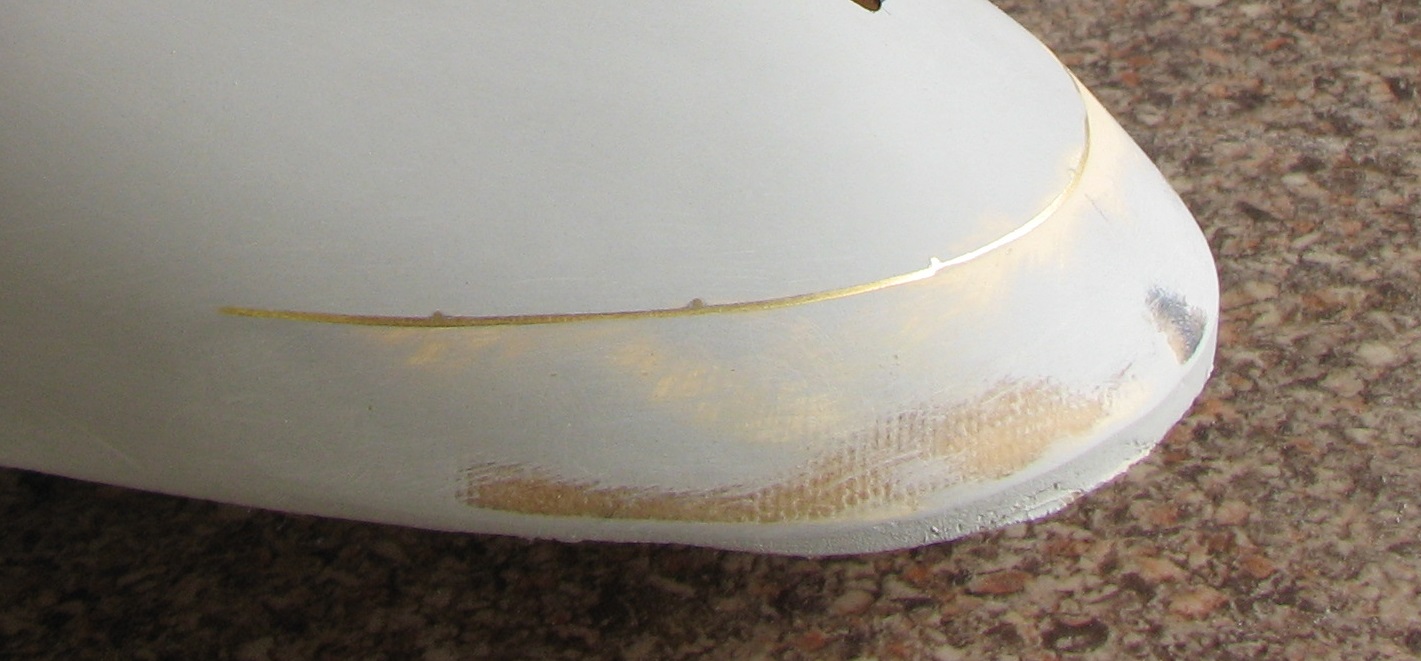 После наклейки полос малярного скотча , на остающиеся , свободные от скотча , полосы нанесен слой жидкой автошпаклевки с помощью краскопульта и компрессора.