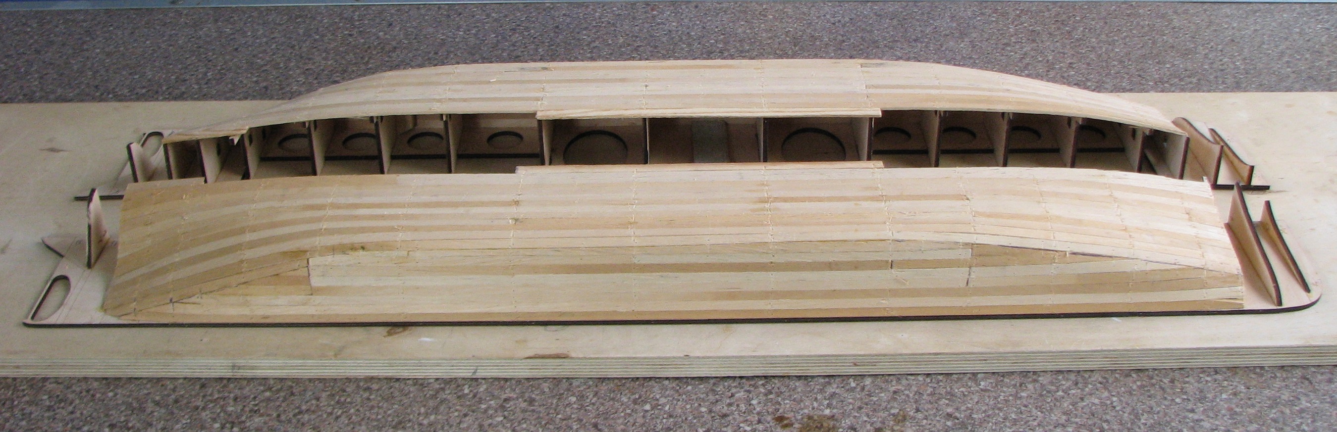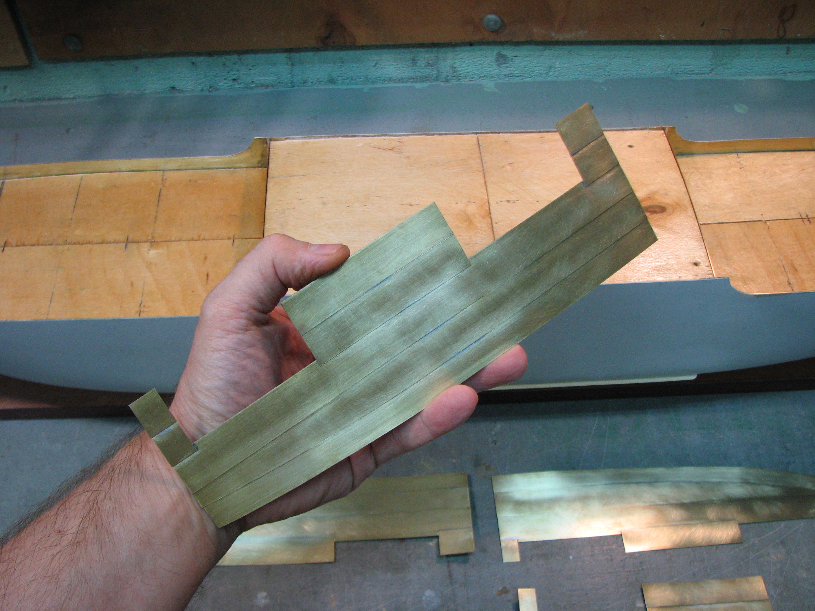 Игорь, листы палубного настила укладывались внахлест. Полученную "ступеньку" я и показываю на модели.