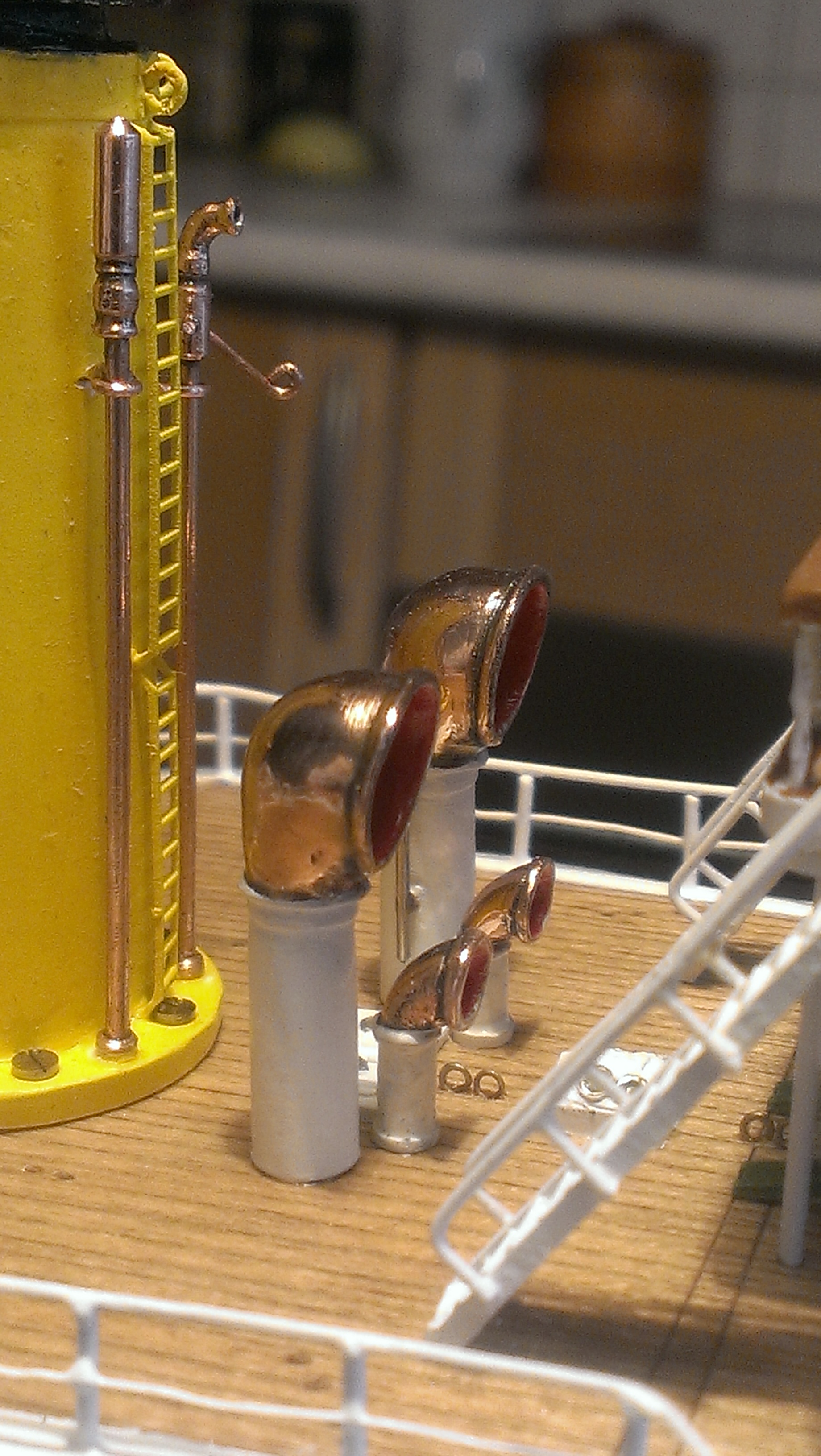 Еще в 2016 году, когда занимался реинкарнацией своего «Варяга», а в частности изготовлением воздухозаборников, наткнулся я в И-нете на твой материал по изготовлению воздухозаборников для «Пересвета». Он меня вдохновил и решил сделать на «Варяге» воздухозаборники методом гальванопластики, что бы их оголовки на модели блестели медью. Мне понравилась технология, так скажем по выплавляемым моделям. Только вместо воска я использовал, слав Розе, поскольку воздухозаборники были уже отлиты.