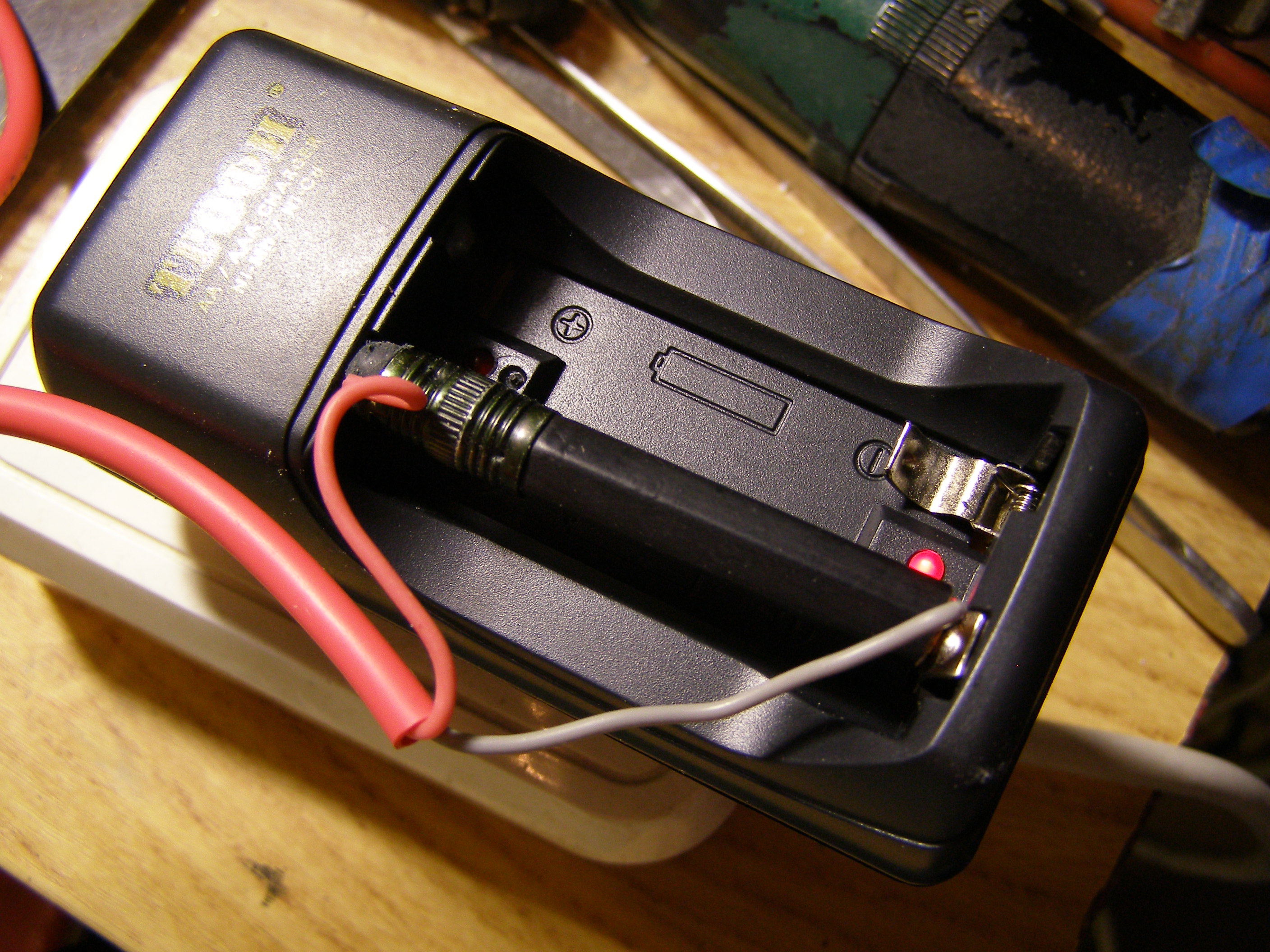 В качестве питания, я использовал самое дешевое зарядное устройство для пальчиковых аккумуляторов. Ни напряжения, ни тока на выходе я не знаю.