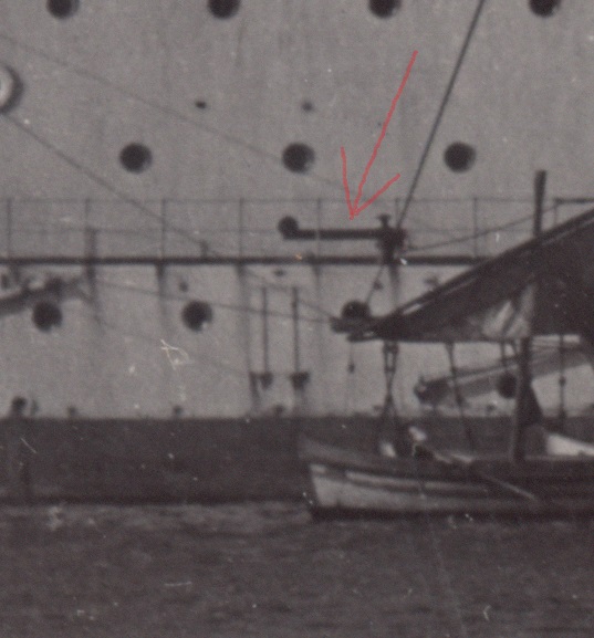 Это грузовая балка для погрузки 10" снарядов и мин. Я то же задавался вопросом почему она не совпадает с портом, но ответа не нашёл.