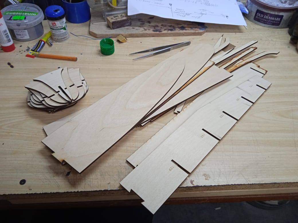 получил заказанную лазерную резку и начал сборку набора для выклейки корпуса...